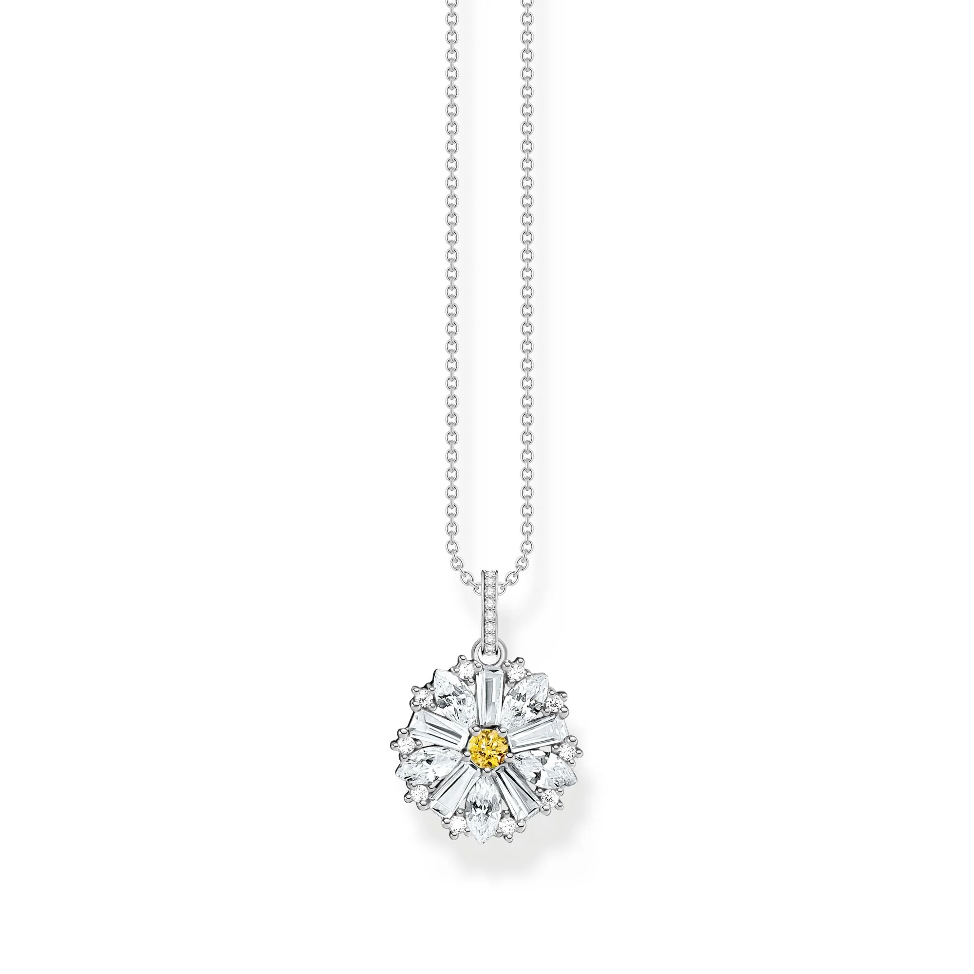 Delicately crafted in high-quality sterling silver, the THOMAS SABO Lovely Daisy Pendant Chain embodies the charm and elegance of designer jewelry. A standout piece in the women’s jewelry category, this pendant necklace captures the essence of floral grace with its finely detailed daisy motif, making it a timeless expression of femininity. With a polished finish and subtle sparkle, it’s ideal for layering or wearing solo as a statement of everyday sophistication. As a hallmark of luxury jewelry, the craftsmanship reflects THOMAS SABO’s signature modern aesthetic, blending romantic design with precise artistry. Whether worn as a gift or a personal keepsake, this silver necklace radiates understated beauty and premium appeal.