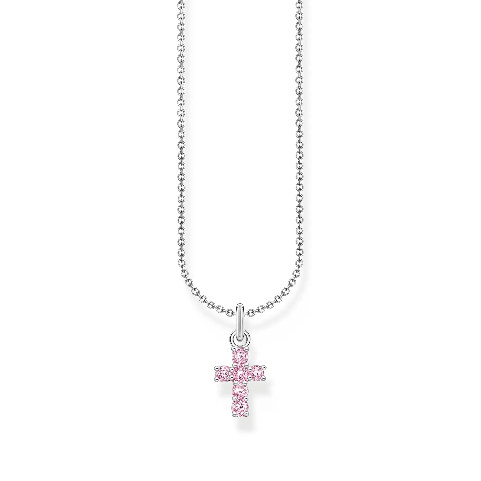 This elegant women’s necklace from Thomas Sabo features a refined cross pendant adorned with sparkling pink zirconia, bringing a fresh and modern twist to a timeless design. Crafted from recycled 925 sterling silver, the delicate adjustable chain sits beautifully on the neckline, offering both versatility and style. Perfect for any occasion, this piece reflects the brand’s renowned craftsmanship and glamorous aesthetic, ensuring a sophisticated accent to every outfit.