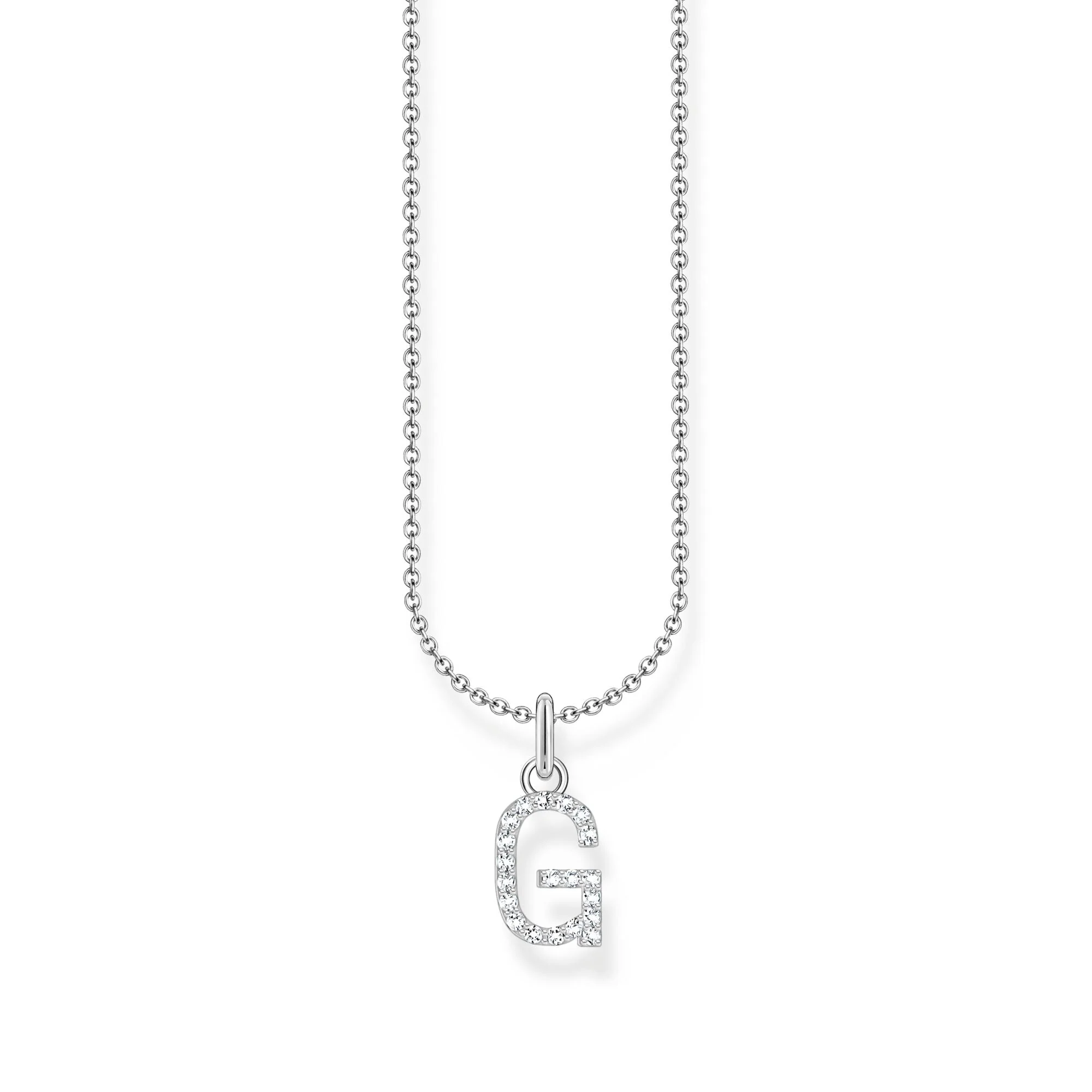 Crafted from recycled 925 silver, this Thomas Sabo necklace features a delicate letter G pendant adorned with shimmering white zirconia pavé for a refined sparkle. The adjustable chain ensures a perfect fit, designed to gracefully accentuate any neckline from 38 to 45 cm. Showcasing the brand’s signature modern aesthetic, this women’s necklace offers understated glamour and timeless appeal, making it an elegant statement piece to enhance any jewelry collection.