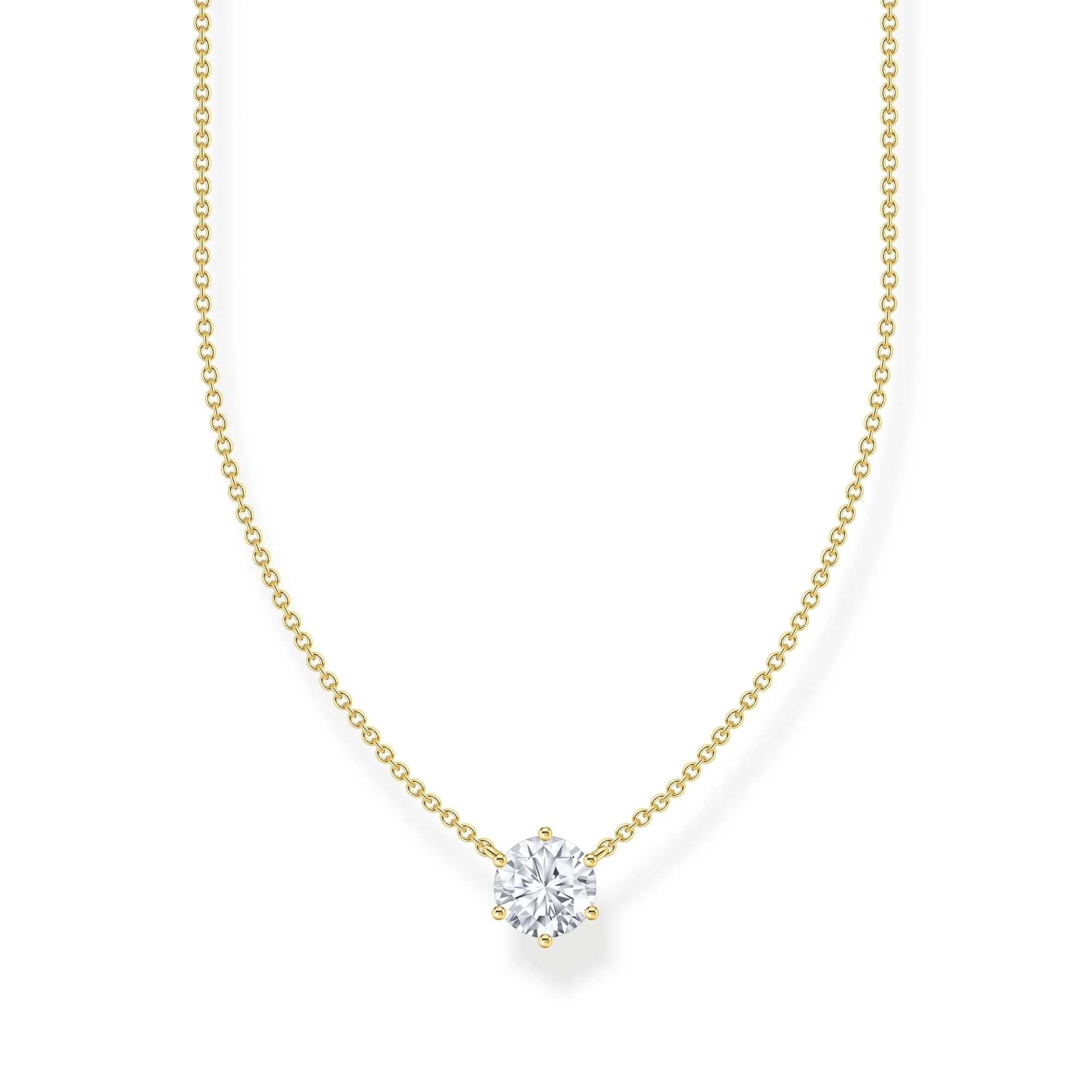 Elegant and timeless, this THOMAS SABO necklace showcases a striking white zirconia pendant suspended from a delicate chain. Crafted from recycled 925 sterling silver and finished with radiant 18k gold plating, its refined design captures both luxury and sustainability. The adjustable length offers a perfect fit for any neckline, making it a versatile addition to your jewelry collection. Celebrated for its distinctive style, Thomas Sabo brings modern sophistication and enduring appeal to every occasion with this beautifully crafted women’s necklace.