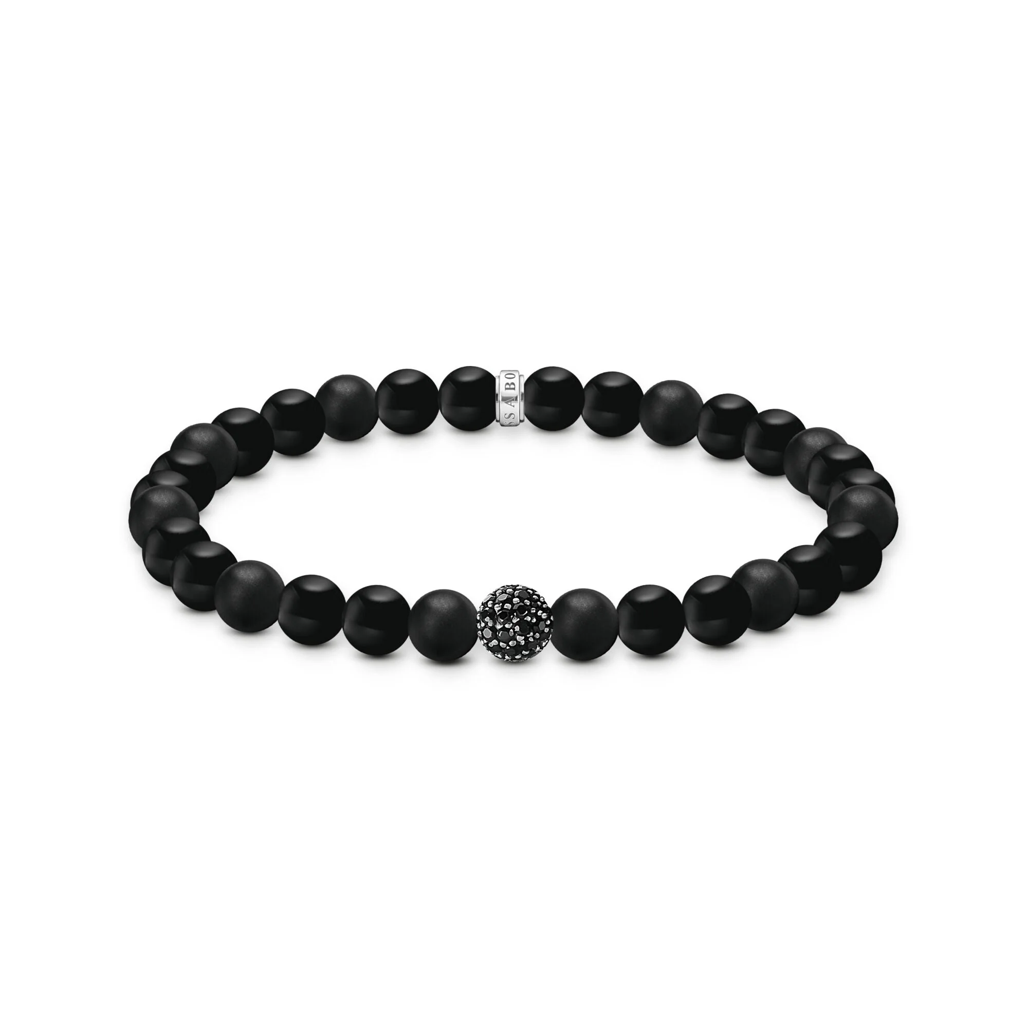 This THOMAS SABO obsidian bracelet with zirconia blends natural elegance with meticulous craftsmanship, making it a refined choice in designer jewelry. Its 7 mm beads alternate between matte and polished obsidian, offering a rich texture and understated luxury. At the center, a sparkling pavé bead crafted from blackened 925 sterling silver and adorned with black zirconia stones adds a striking focal point. A subtly engraved logo ring in the same blackened silver completes the look, reinforcing the piece’s premium finish. Designed as a stretch bracelet for effortless wear, it is available in a 17 cm size, ideal for a comfortable and tailored fit. Perfect for those seeking a sophisticated black bracelet with timeless appeal, this piece stands out in the luxury jewelry category for its bold materials and harmonious design.