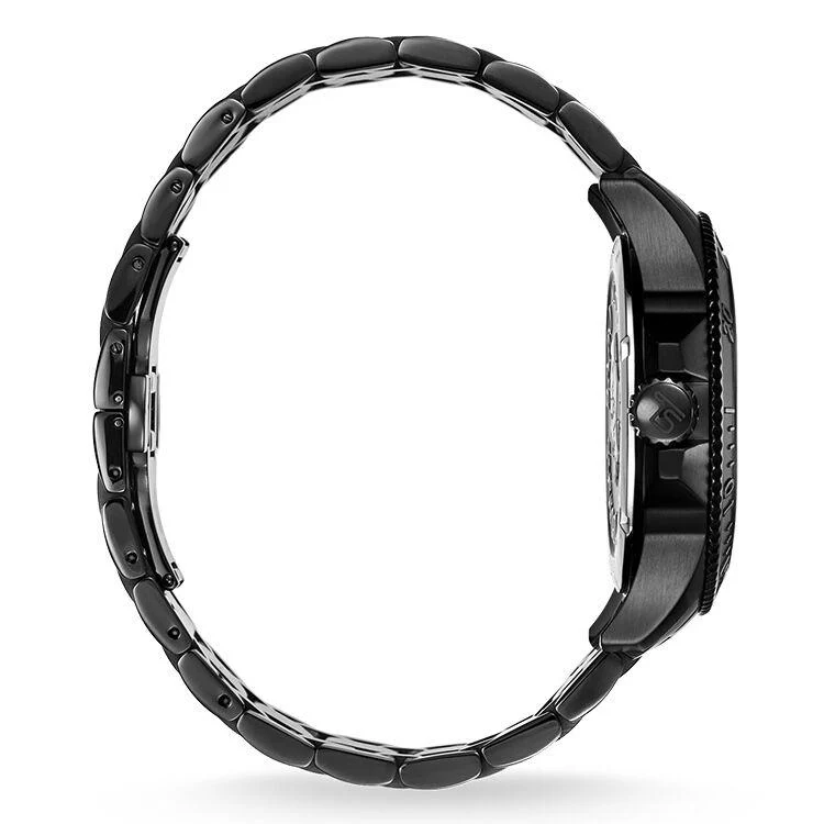 Material: watch, round, quartz, stainless steel case IP, stainless steel bracelet IP black