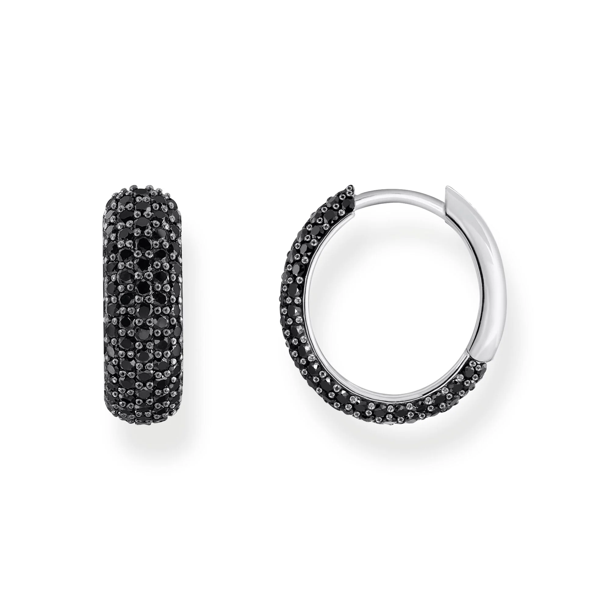 Embrace a statement of refined style with these small, wide hoop earrings by Thomas Sabo, crafted from recycled silver. The striking black zirconia pavé detailing imbues each curve with a modern, glamorous allure, while the bold brand engraving on the back pays tribute to exceptional craftsmanship. Designed for a comfortable fit with a secure clip fastening, these earrings perfectly balance timeless elegance and contemporary edge, making them an ideal accessory for any unisex jewelry collection.