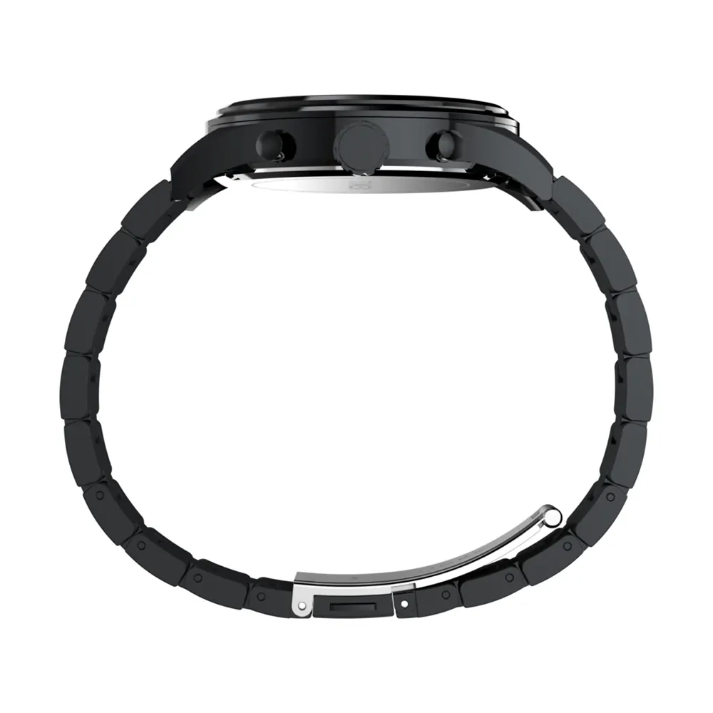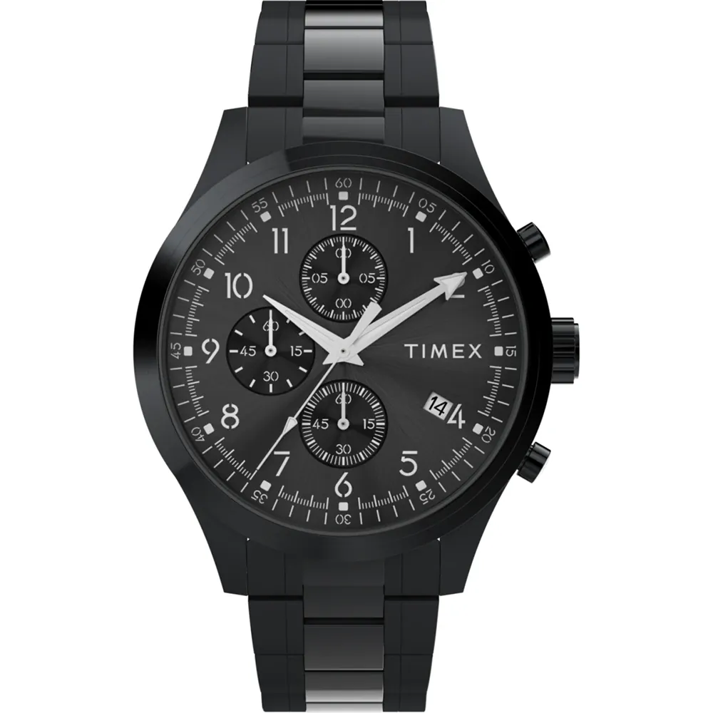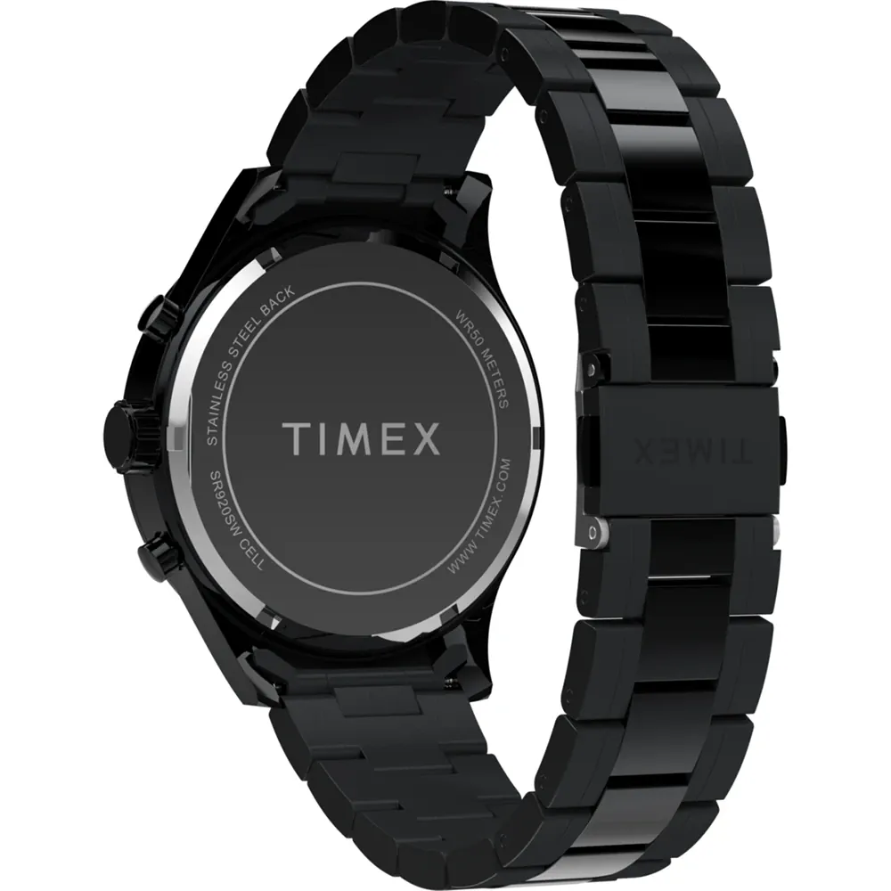The Timex Chrono All Black TW2Y01600 men’s watch commands attention with its bold black stainless steel case and matching dial, delivering a seamless, modern statement for both formal and casual moments. Showcasing Timex craftsmanship, its 43mm profile is paired with scratch-resistant mineral glass for enduring clarity. Driven by precise quartz movement and water resistant up to 50 meters, this refined timepiece blends rugged performance with minimalist elegance, embodying premium design in the watches category while ensuring lasting sophistication and reliability.