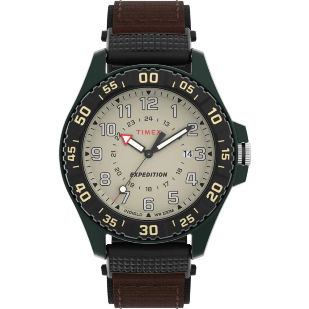The Expedition Acadia Rugged is the ultimate addition to our Expedition line. Lightweight, highly visible, and exceptionally tough, this iteration brings an outdoor-ready update to one of our best-selling styles. The watch features a rugged 42mm case, ultra-practical INDIGLO® backlight, 100-meter water resistance rating and a technical mixed-material fabric strap to provide nothing but comfort on every adventure that lies ahead.