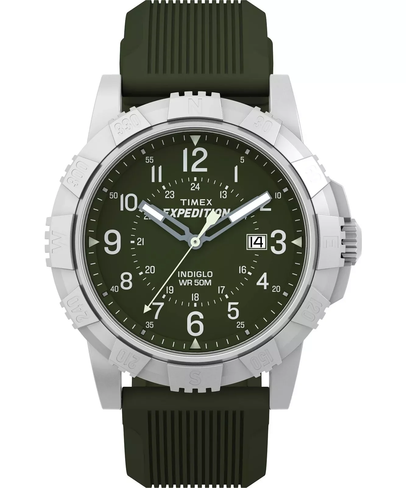 The Timex Expedition North men’s watch stands as a testament to expert craftsmanship and contemporary adventure. Its robust 45mm brass case in black finish surrounds a distinctive green dial, accented by bold numerals and luminous hands for easy readability. The signature Indiglo backlight ensures clear visibility, day or night, while a scratch-resistant mineral crystal lens and 50-meter water resistance deliver reliable protection for outdoor pursuits and everyday style. A textured green rubber strap and secure buckle clasp provide comfort and a tailored fit. Powered by quartz movement, this watch blends tactical sophistication with enduring resilience, making it an ideal choice in premium men’s watches for those who value precision and understated style.