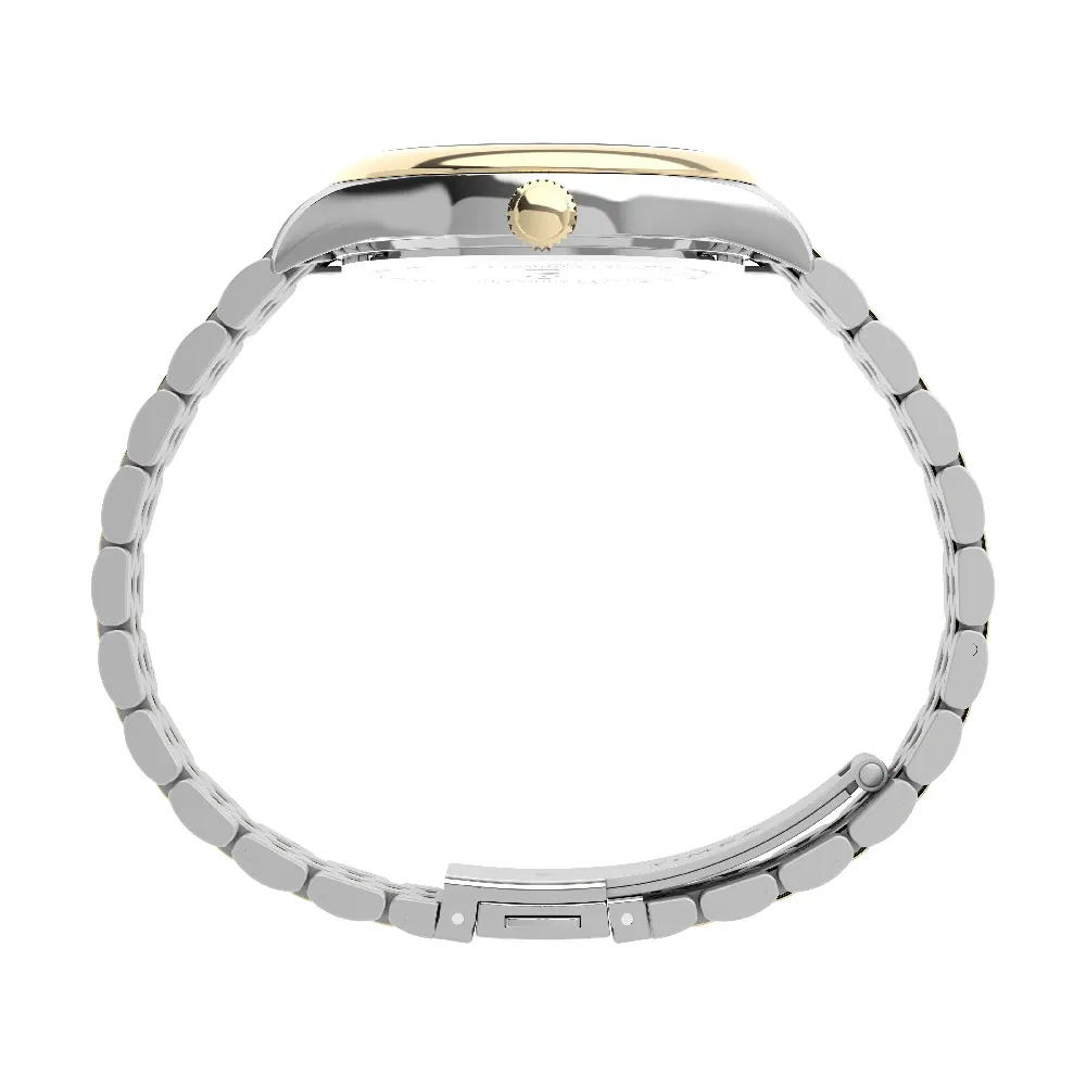 Beyond its functional merits, the Timex Legacy Watch captivates with its unique two-tone design. This elegant combination of colors adds a sophisticated flair to any ensemble, making the watch a versatile addition to your wardrobe. Whether you’re dressing for a formal event or opting for a casual look, its chic aesthetic seamlessly complements your attire, enhancing your overall style statement.