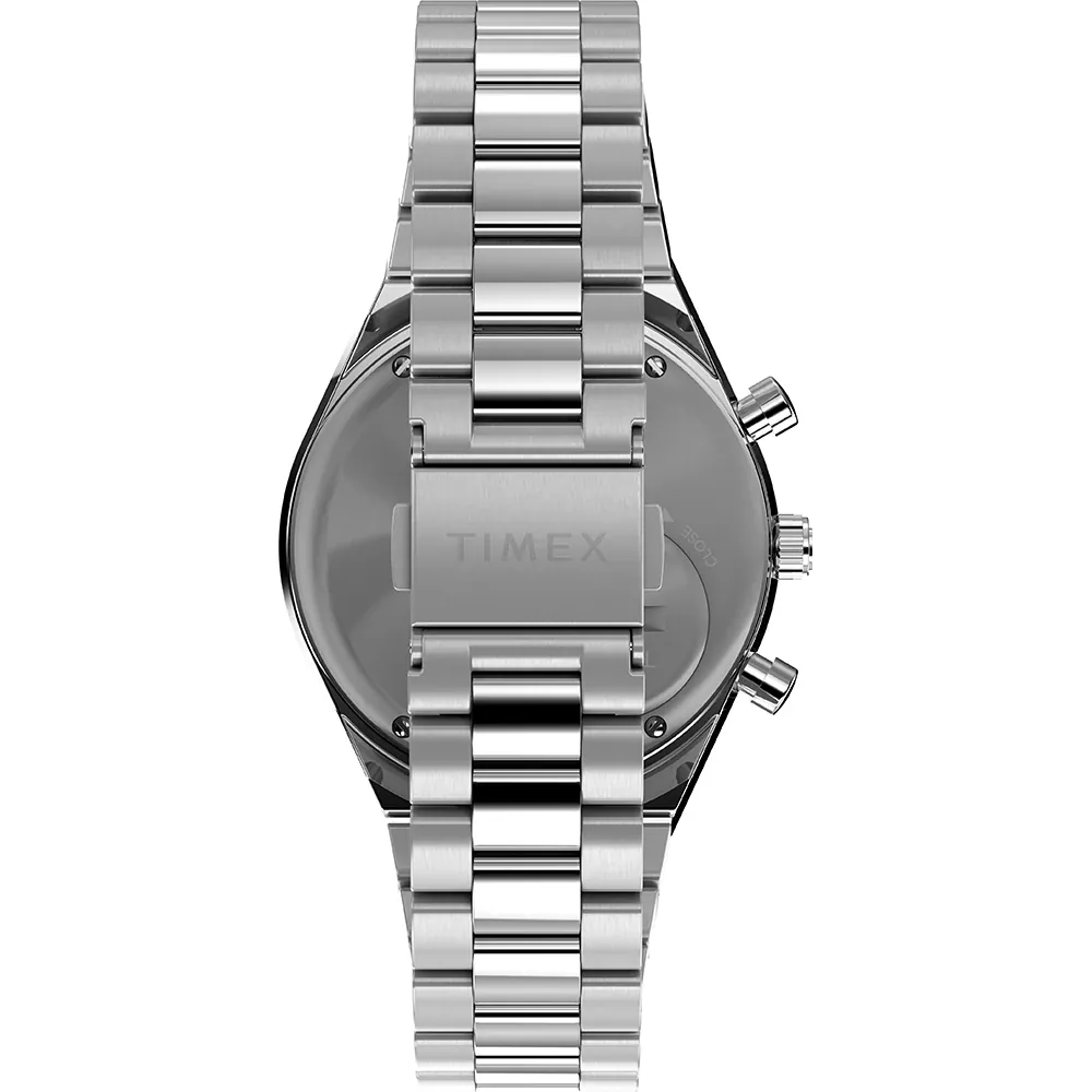 The Timex Q Chronograph Stainless Steel Watch TW2W51600 exudes sophistication with its striking blue dial, encased in a polished 40mm stainless steel case and seamlessly complemented by a classic link bracelet. Mineral crystal glass ensures pristine clarity, while the integrated tachymeter and trio of subdials showcase refined chronograph precision. This men’s watch harmoniously blends durability and elegance, enhanced by water resistance up to 50 meters and a secure deployment clasp, making it an exceptional choice for those who value performance and premium design in luxury timepieces.