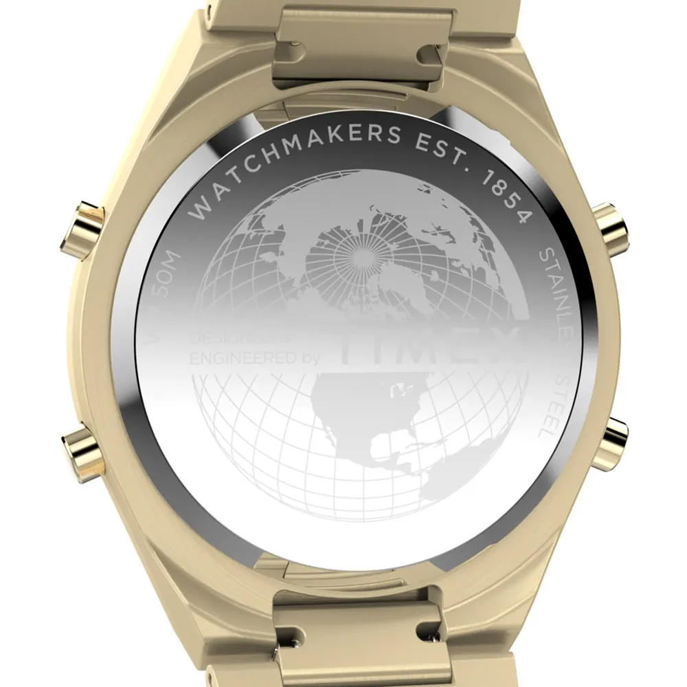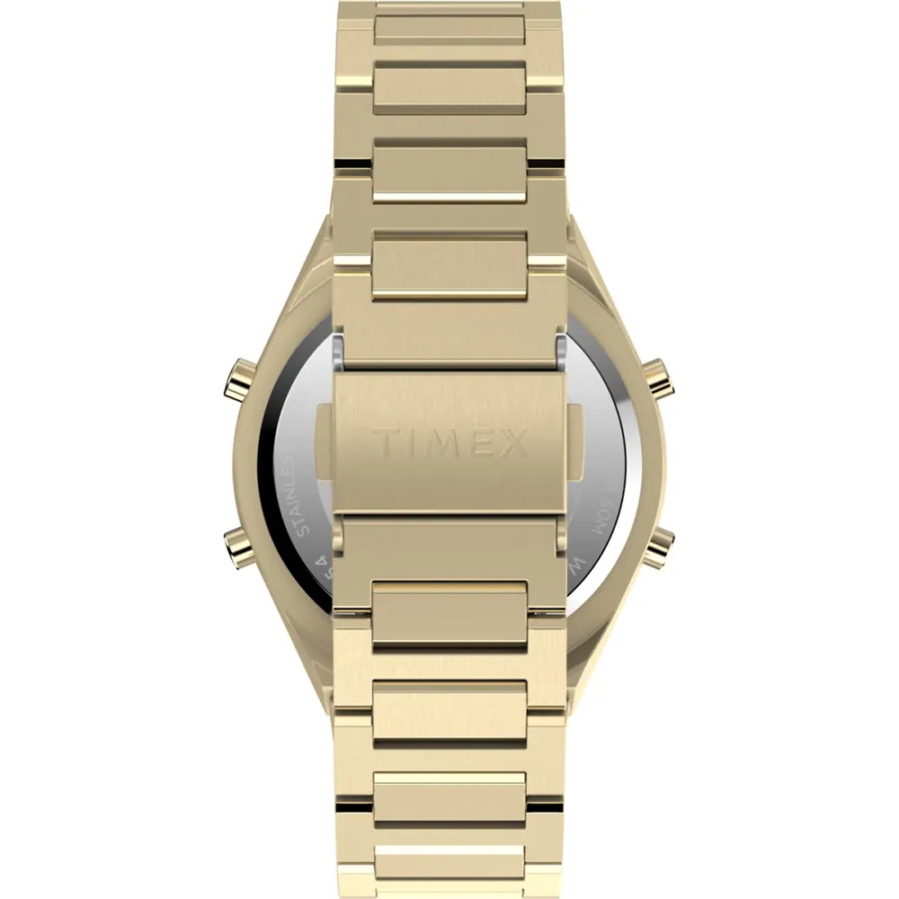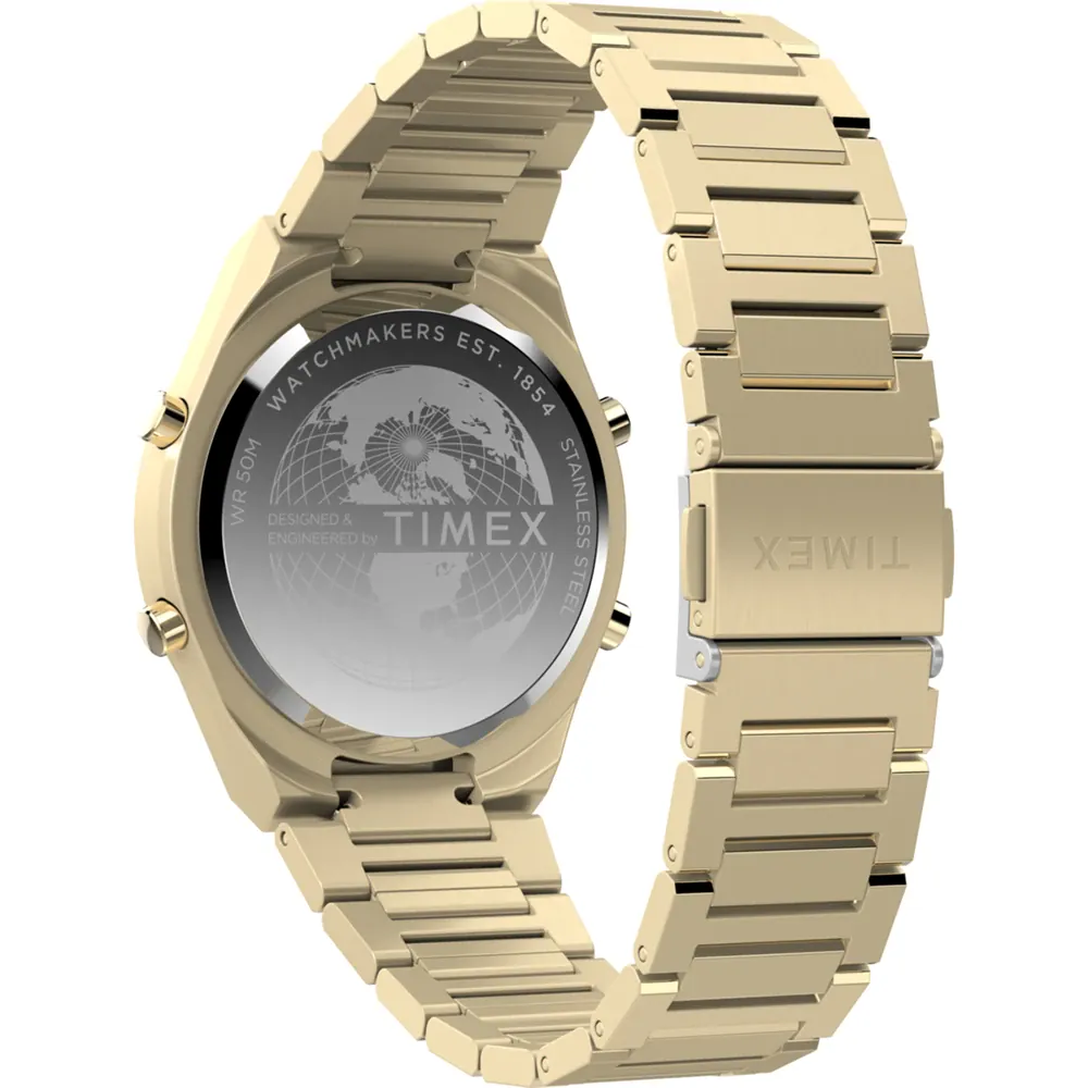 The Timex TW2Y09700 Q80 Continental Watch exemplifies modern elegance with its polished stainless steel construction and sophisticated gold-tone finish. Featuring a robust 39mm case and a sleek metal band, this men’s watch ensures both comfort and style for everyday wear and formal occasions. The quartz movement guarantees precise timekeeping, while the mineral glass safeguards the digital dial against scratches and daily wear. Water resistant to 50 meters, it seamlessly blends practicality with vintage-inspired design, making it a standout accessory in the watches category. Reflecting Timex’s legacy of meticulous craftsmanship, this timepiece is a refined expression of enduring quality and timeless appeal.