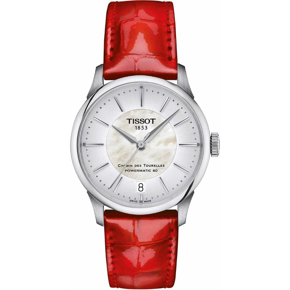 Tissot Chemin Des Tourelles Powermatic Red Leather Strap Women Watch T1392071611100
