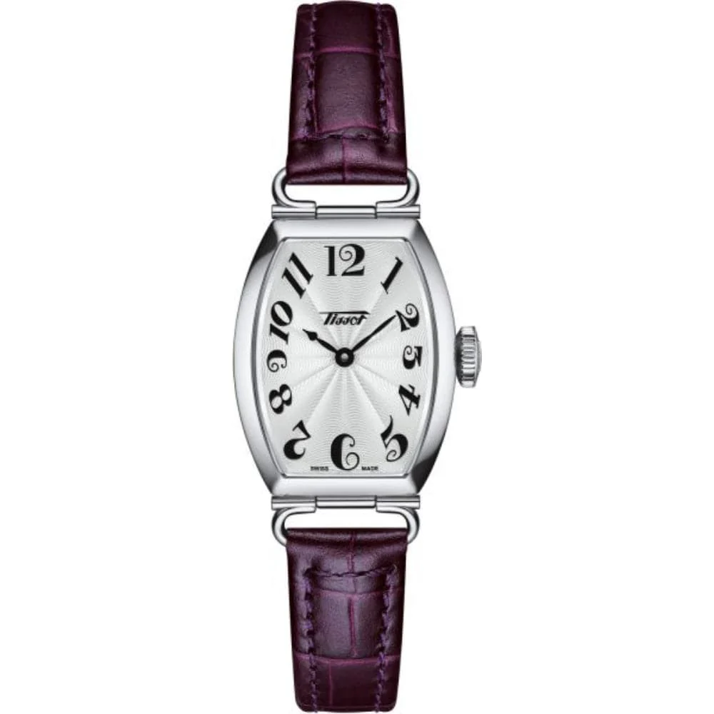 Buy this TISSOT HERITAGE PORTO SMALL LADY T1281091603200 watch with us. This model the T1281091603200 is a beautiful watch from Tissot with a Quartz timepiece. The time is displayed Analog. In addition, this watch features a Sapphire watch-glass. The watch is 3 bar waterproof, and with a strap of Leather in the color Purple.
