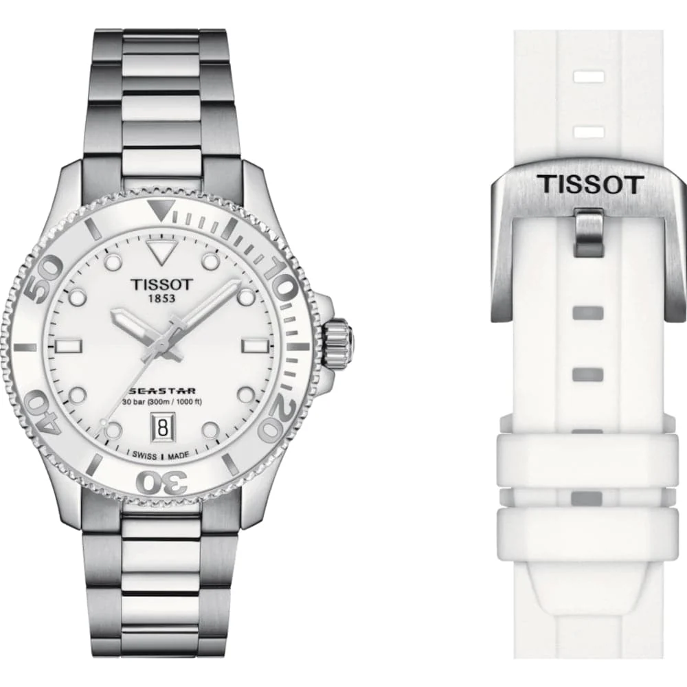 You can feel it. Under the waves, there is silence. In crystal clear waters, you can see the sun’s rays breaking through the surface. In your mind, only calm. On your wrist, the Seastar 1000 Quartz, the door to this underwater world. At 36mm, the Seastar 1000 Quartz has a natural confidence about it. It’s chic, assertive and versatile, ready to stride through the urban jungle unfazed and also strong enough to dive deep under the sea. Whether you choose the black, blue or white lacquered dial, it comes with a stainless steel case and bracelet, a uni-directional rotating bezel with a mineral glass insert, a screw-down crown and water resistance up to 30 bar (300m / 1000ft)). And if you want, you can quickly switch the bracelet for an orange, white, light-blue or black silicone strap. Change your outlook and step into another world.
