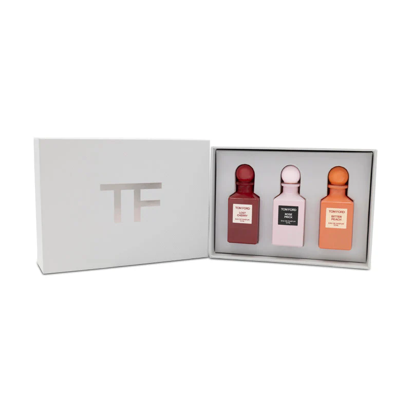 Lose yourself in the indulgence of Tom Ford Lost Cherry, a fragrance that combines the sweetness of cherry with the sensual essence of roasted tonka bean and almond. Embrace the thorny yet romantic hues of Tom Ford Rose Prick, a tantalising concoction of rare roses and Sichuan pepper. Experience the luscious decadence of Tom Ford Bitter Peach, an entrancing blend of peach and Sicilian blood orange.