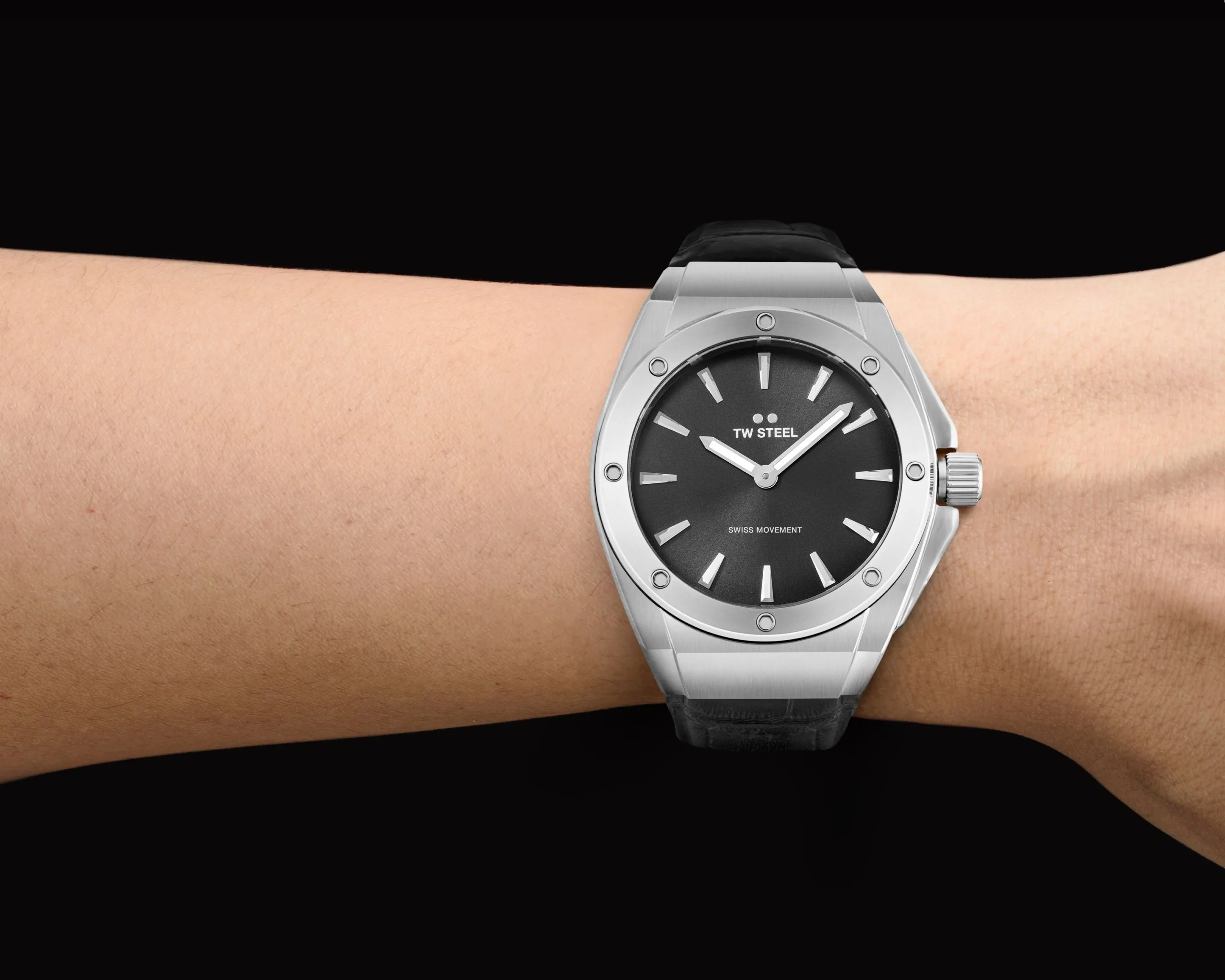Refined yet bold, the TW Steel CEO Tech CE4033 women’s watch captures contemporary elegance with its 38mm stainless steel case and a striking black dial framed by 8 precision screws. Driven by a reliable Swiss quartz movement, this timepiece balances modern design with trusted functionality. The black Italian leather croco-embossed strap adds a luxurious texture, while the sapphire crystal glass ensures lasting clarity and protection. With water resistance up to 100 meters and a sleek 2-hand display, it’s a confident statement for any occasion. Ideal for those who appreciate sophisticated craftsmanship in a women’s watch, this piece delivers enduring style within the premium watches category.