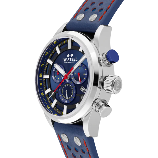 Go full throttle with this Fast Lane Swiss Volante Limited Edition watch. The SVS206 is powered by a Swiss chronograph movement and features anti-reflective sapphire crystal, 10 ATM and three year worldwide warranty.