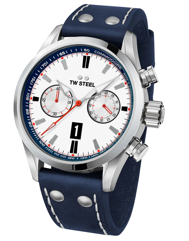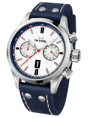 Wear a piece of racing history on the wrist with the TW991 Holden 96 VR Commodore Limited Edition. Limited to 350 pieces, this timepiece features a chronograph movement and comes with a blue leather strap with white stitching. The case back proudly shows 1996 Holden logo and race statistics.