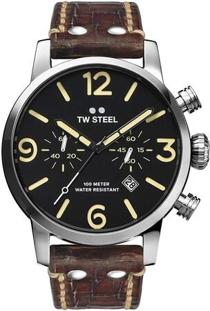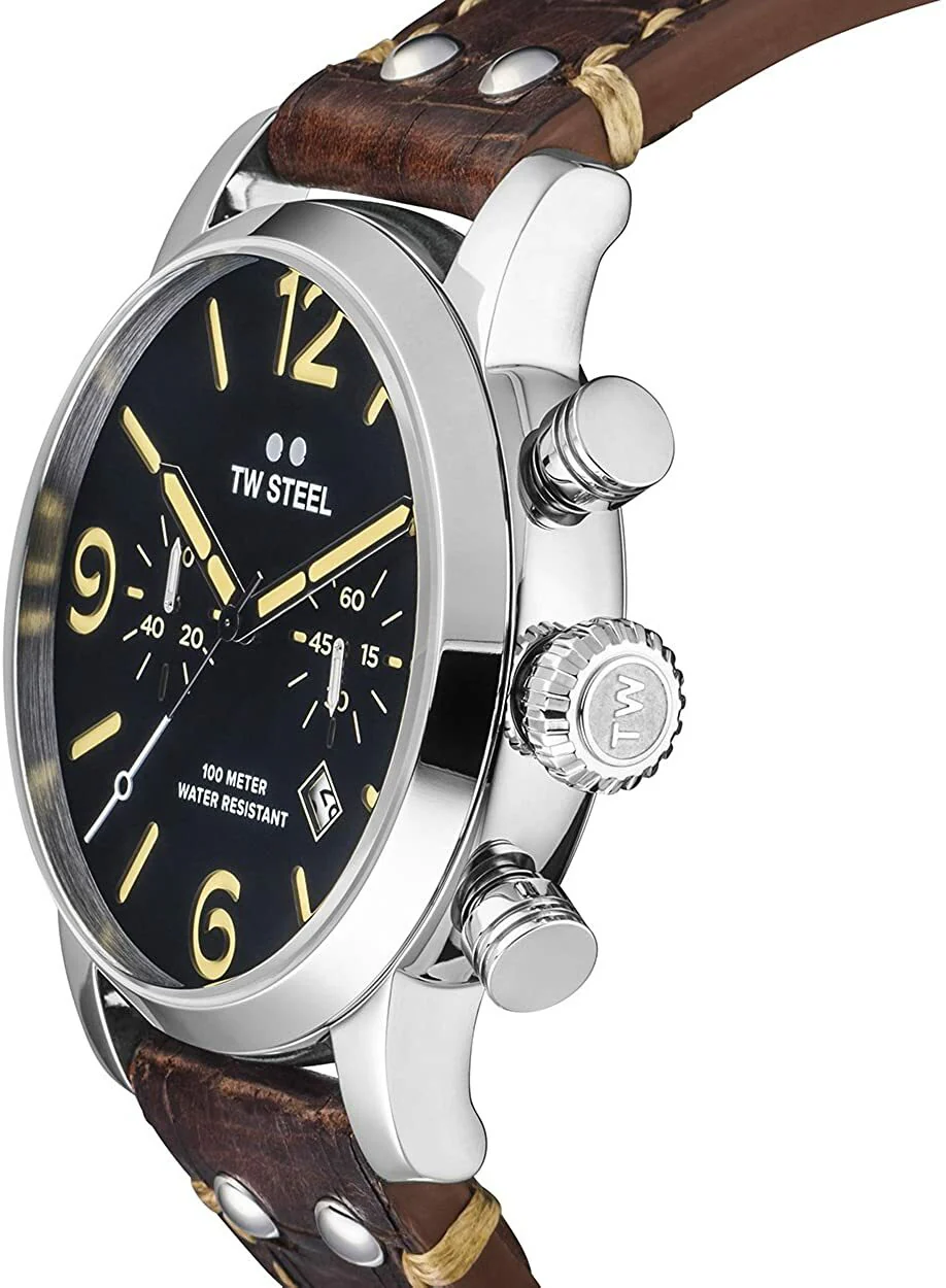 Cut loose, be bold and let the good times roll. This new Maverick features a big caliber chrono movement, a black sandwich dial and a walnut brown vintage leather strap with Quick Change Construction.