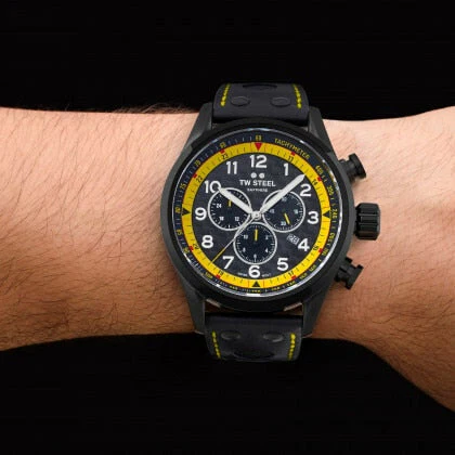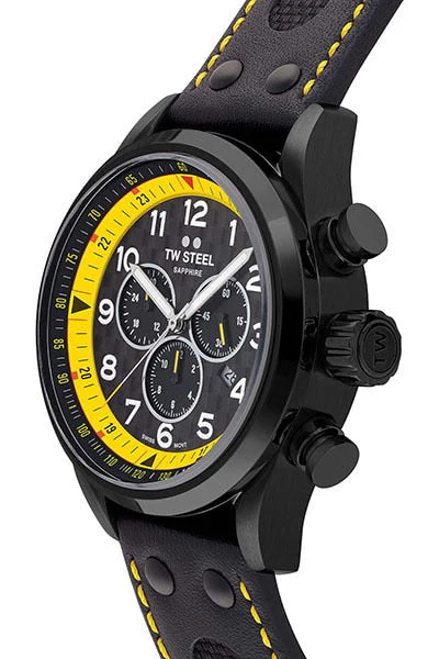 Go full throttle with the Coronel WTCR Special Edition. Powered by a Swiss made chronograph movement, this model features a 48mm brushed PVD black coated case with shiny bezel, crown and pushers, and a black carbon dial. The caseback proudly sports a special Coronel WTCR logo.