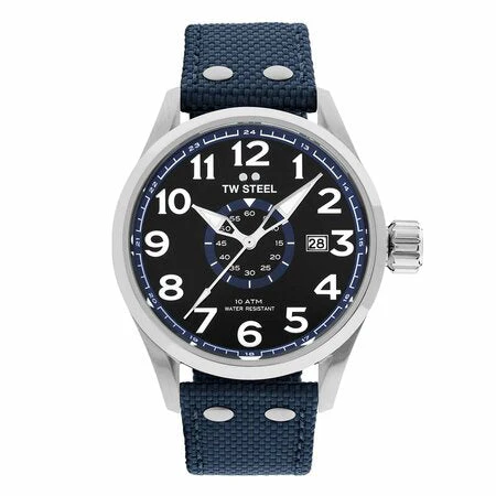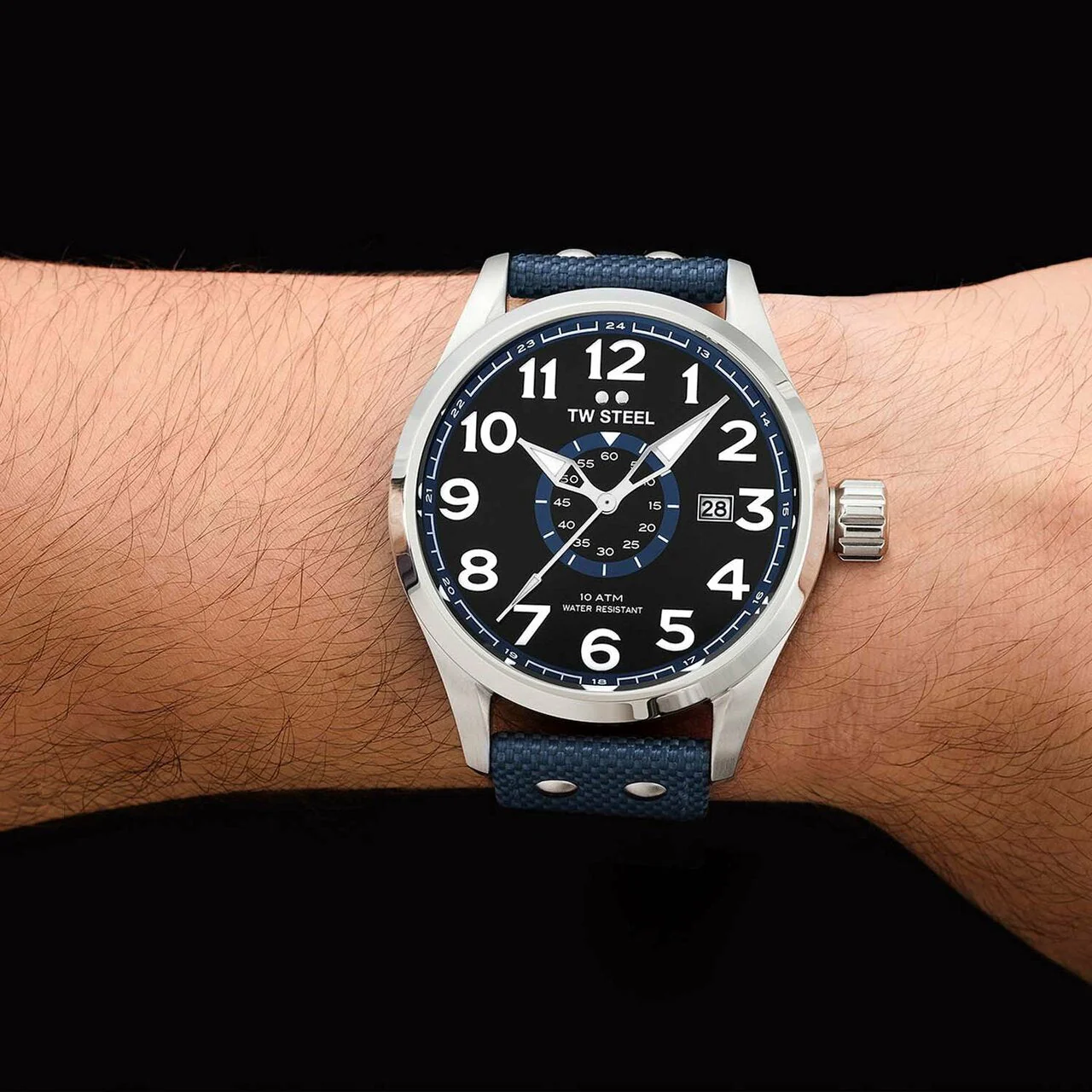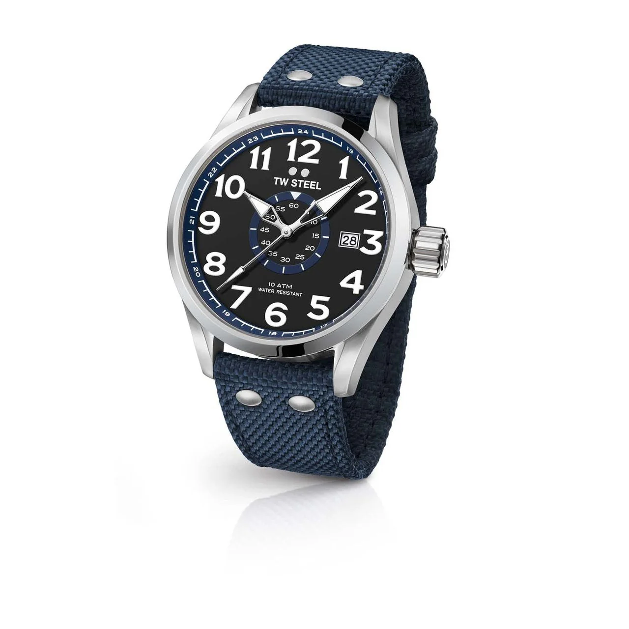 Inspired by driving and racing, this Volante model features a 48mm steel case with a black dial and stands out with a dark blue premium quality textile strap.