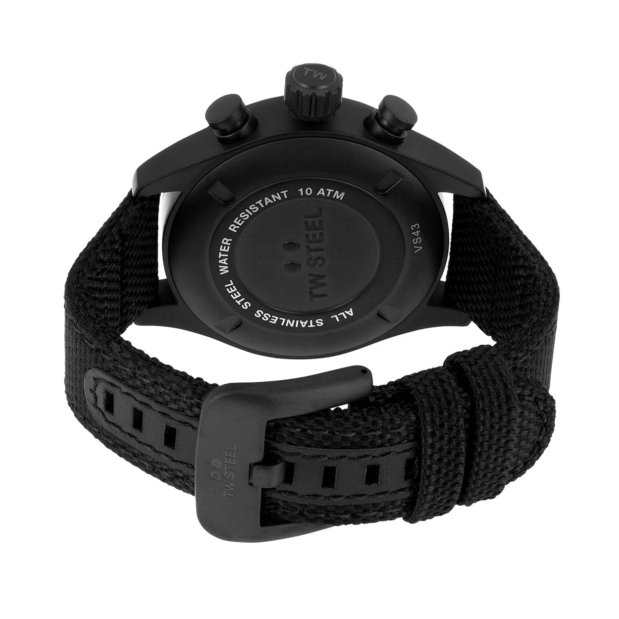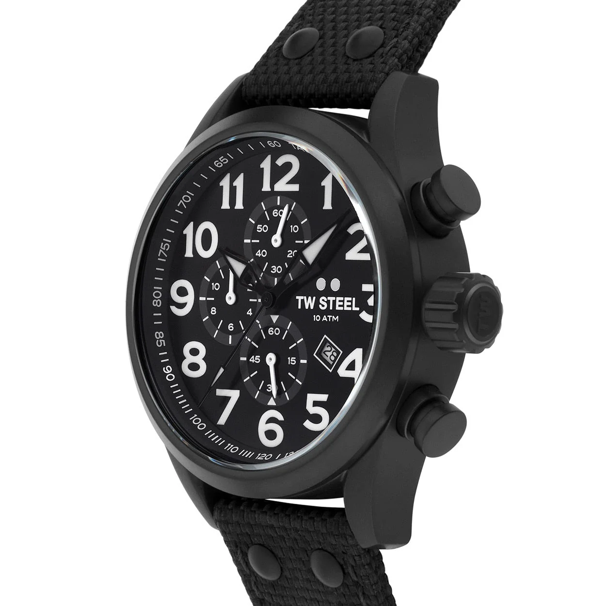 Inspired by driving and racing, this Volante model features a 45mm sandblasted black coated case with a black dial, is powered by a chronograph movement and stands out with a black premium quality textile strap.