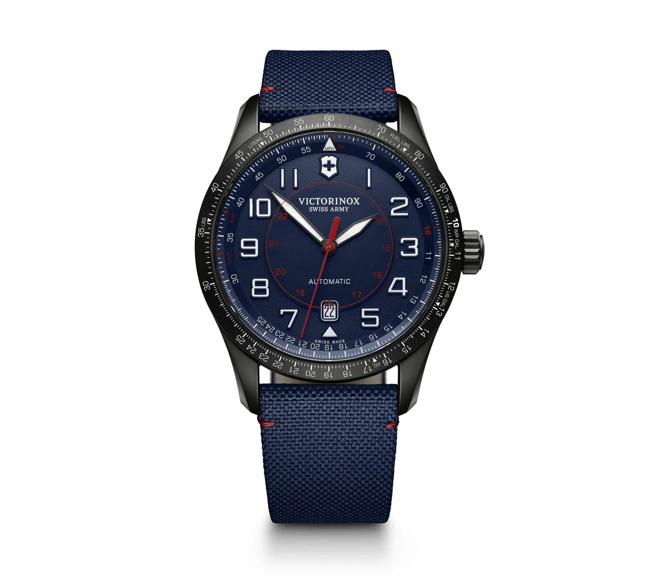 Every detail of this watch is crafted with purpose, from its scratch-resistant, triple-coated anti-reflective sapphire crystal that protects the dial, to the secure screw-in caseback that maintains its integrity. Water-resistant up to 100 meters, this timepiece is as adventurous as you are, ready to accompany you from boardroom to open waters. Embrace the boldness of the Victorinox Airboss, where the art of time is crafted into every tick, every turn, and every look.