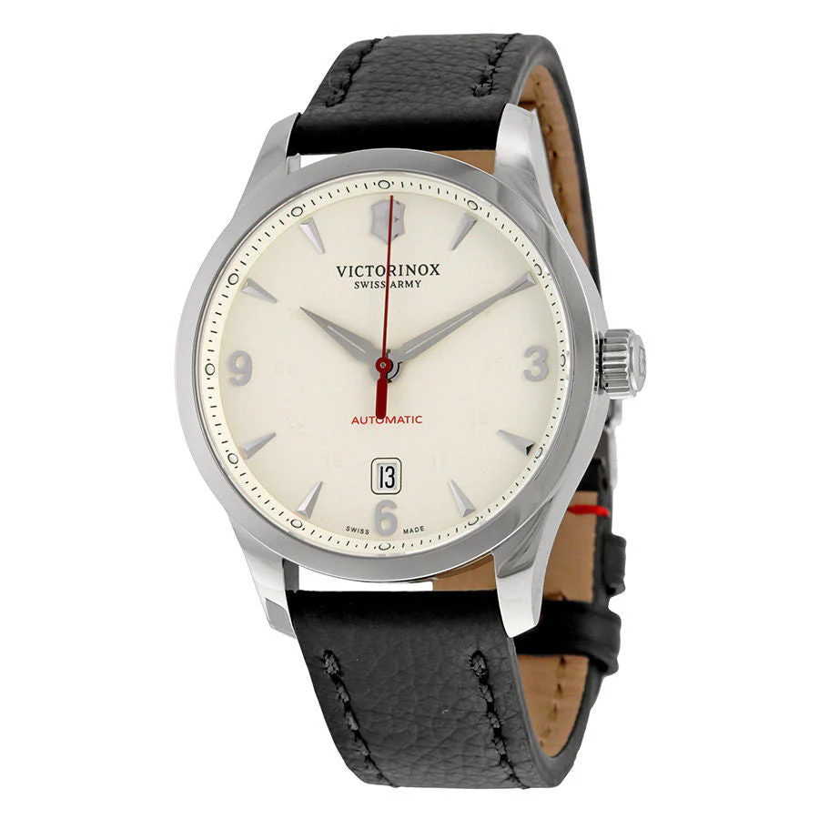 • Victorinox Alliance Mechanical Automatic Ivory Dial Black Leather Mens Watch 241666.