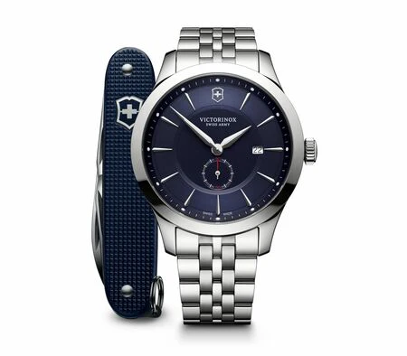 As a testament to Victorinox’s commitment to excellence, the watch is accompanied by the iconic Pioneer Alox Swiss Army Knife. This complementary piece, nestled within the luxurious Victorinox presentation box, is a nod to the brand’s heritage of precision and utility. Whether you’re navigating a boardroom or exploring the great outdoors, this watch and knife duo equips you with the sophistication and utility to conquer your day. Discover the art of timekeeping with Victorinox, where tradition meets modernity.