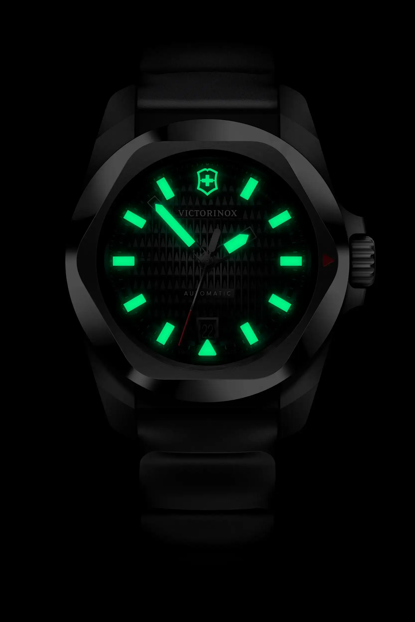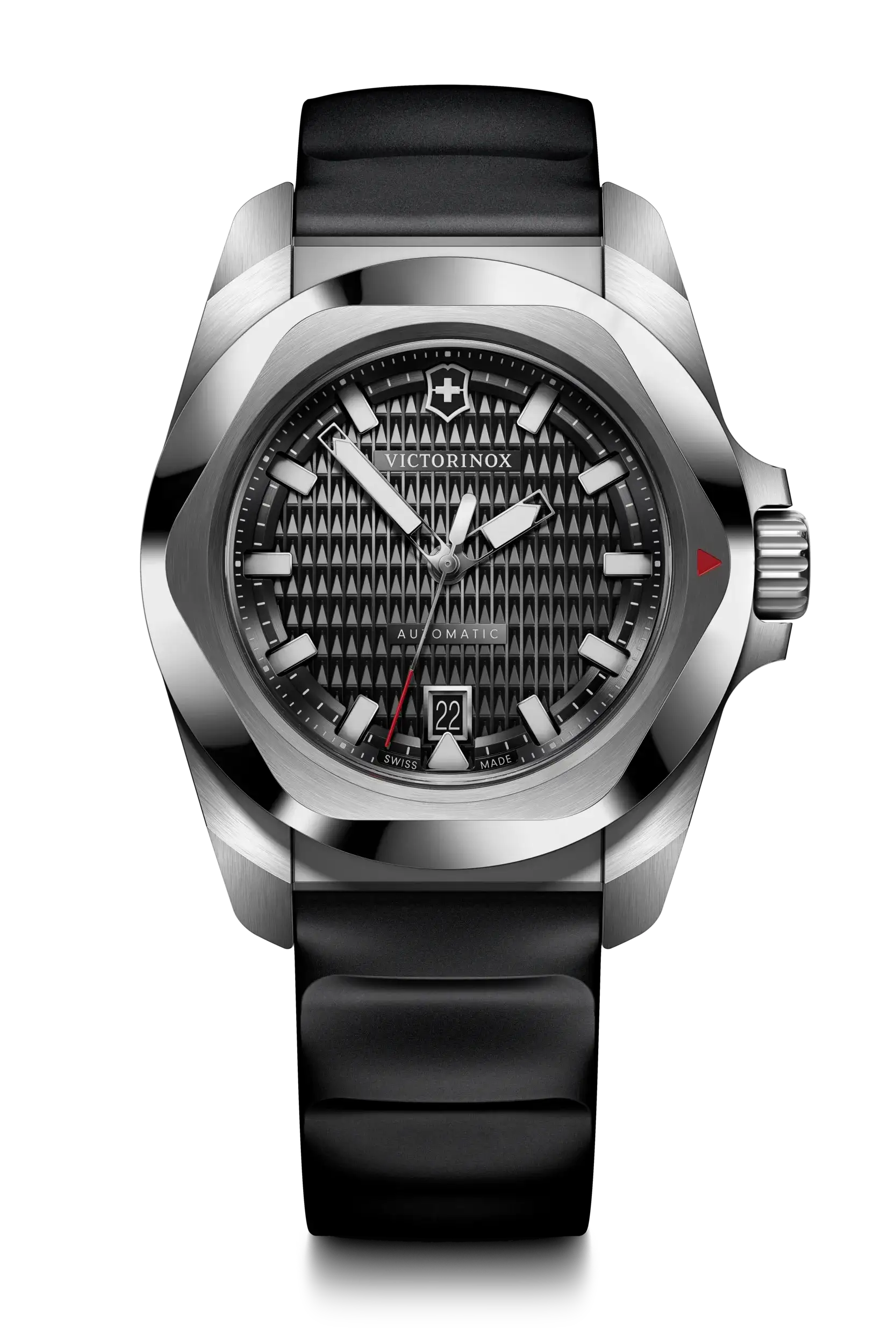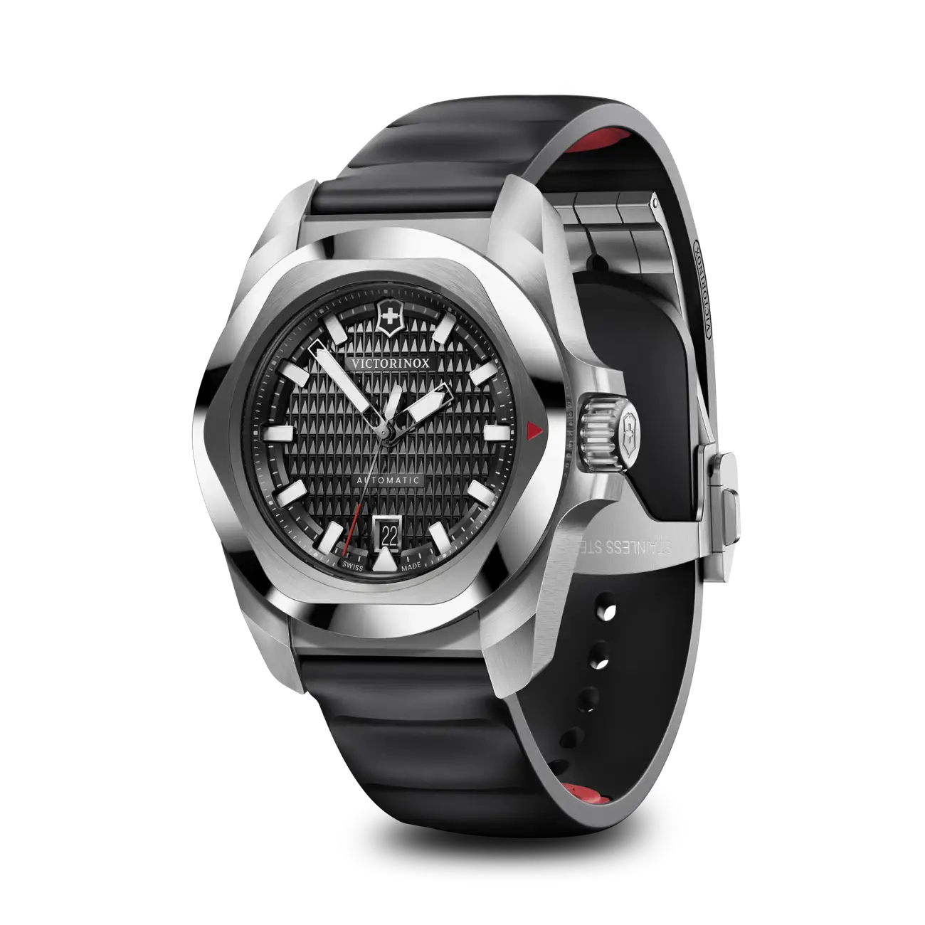 Engineered for resilience and refined with Swiss precision, the Victorinox I.N.O.X Automatic 41mm men’s watch blends cutting-edge durability with timeless style. Featuring a robust 41mm stainless steel case, scratch-resistant sapphire crystal, and a guilloché black dial with luminous hands, it ensures clarity and strength under any condition. The black rubber strap offers lightweight comfort, secured with a deployant clasp for confidence on the move. With a self-winding automatic movement visible through the transparent screw-in case back, this piece showcases true horological craftsmanship. Water-resistant up to 200 meters and equipped with a date display, it’s a bold yet versatile choice within the premium watch category—perfect for daily wear or rugged adventures alike.