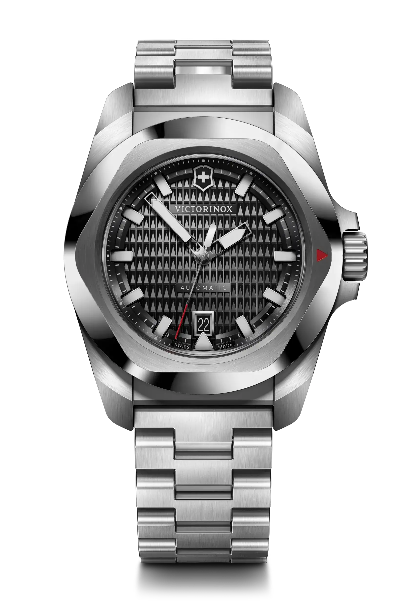 Crafted in Switzerland with exceptional precision, the Victorinox I.N.O.X Automatic 41mm men’s watch blends robust performance with sophisticated design. Its stainless steel case and band showcase a polished-brushed finish that complements the bold black guilloché dial. The luminous hands, date display, and scratch-resistant sapphire crystal offer clarity and functionality in all environments. With a durable 200m water resistance, screw-in caseback, and deployant clasp, this timepiece is engineered for both elegance and endurance. The automatic movement ensures seamless operation without a battery, making it a refined yet practical choice for discerning watch enthusiasts.