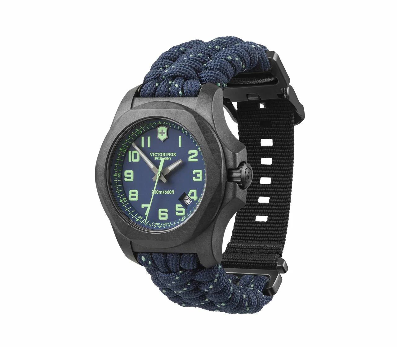 • Unique space-tested carbon case that’s highly resistant to scratches. Color matching innovative handwoven survival paracord strap with green tracers. The Super-LumiNova® technology enables effortless readability in the dark