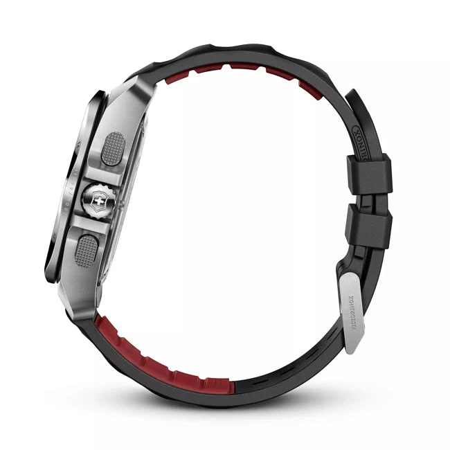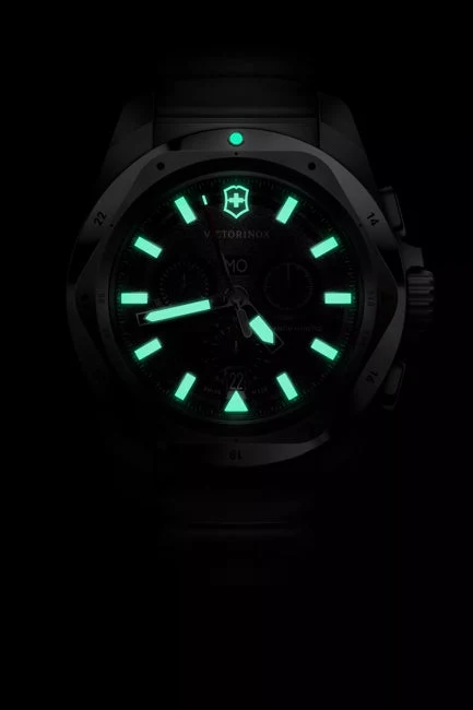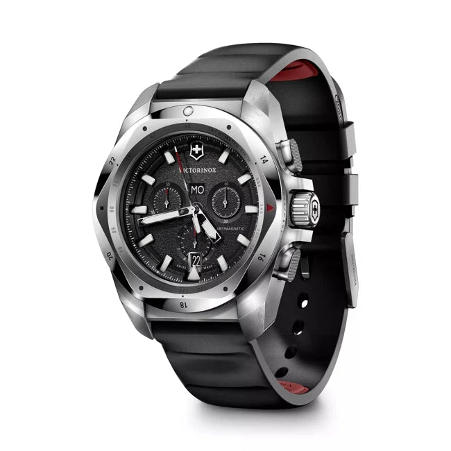 Engineered for resilience and refined for modern style, the Victorinox Inox 43 Chrono Black Dial Rubber Strap Watch 241983 is a bold expression of precision and durability. This men’s watch features a robust 43mm stainless steel case paired with a grainy black dial and luminous hands for enhanced legibility. A polished-brushed bezel, sapphire crystal glass, and high-performance black rubber strap complete its rugged yet sophisticated aesthetic. Powered by a quartz chronograph movement with date function, this timepiece is water resistant up to 200 meters, making it ideal for both urban wear and active pursuits. The screw-in caseback and regular buckle closure offer added security and comfort, while the inclusion of a Victorinox box enhances its premium appeal.
