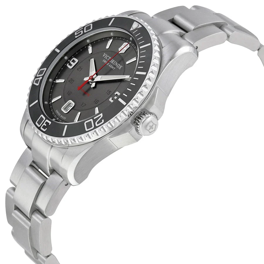 Securely fasten this masterpiece to your wrist with the stainless steel band, designed in a sleek silver tone to complement the dial, and equipped with a fold-over clasp featuring a double push-button safety for peace of mind. With a band width of 2.2 centimeters, it fits comfortably, evoking a sense of sturdiness and style that is quintessentially Victorinox.