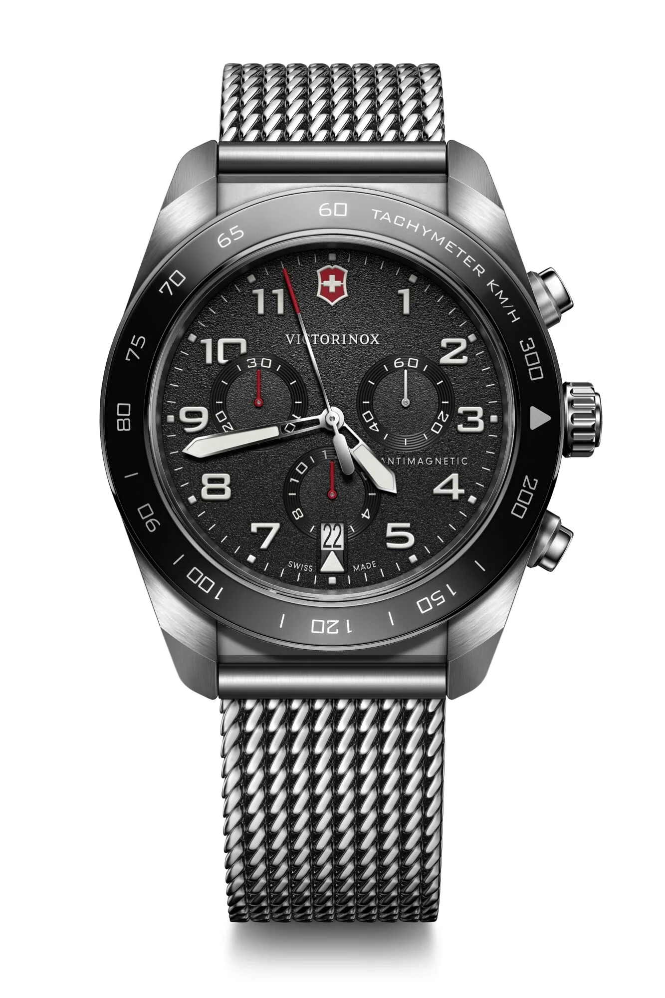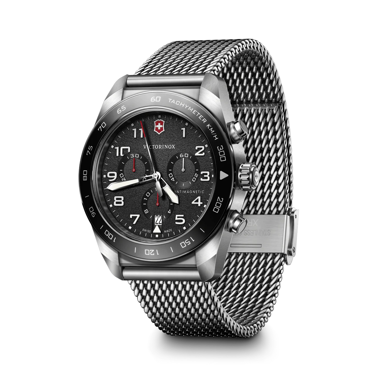 Discover a timepiece with streamlined good looks and uncompromising functionality. The Swiss Army Chrono excels in all capacities: tracking speed, distance and time with exacting precision. Distinguished by its dependable technicality and reliability, it’s the intelligent choice for athletes, pilots or intrepid global travelers. Keep it close and push your limits.