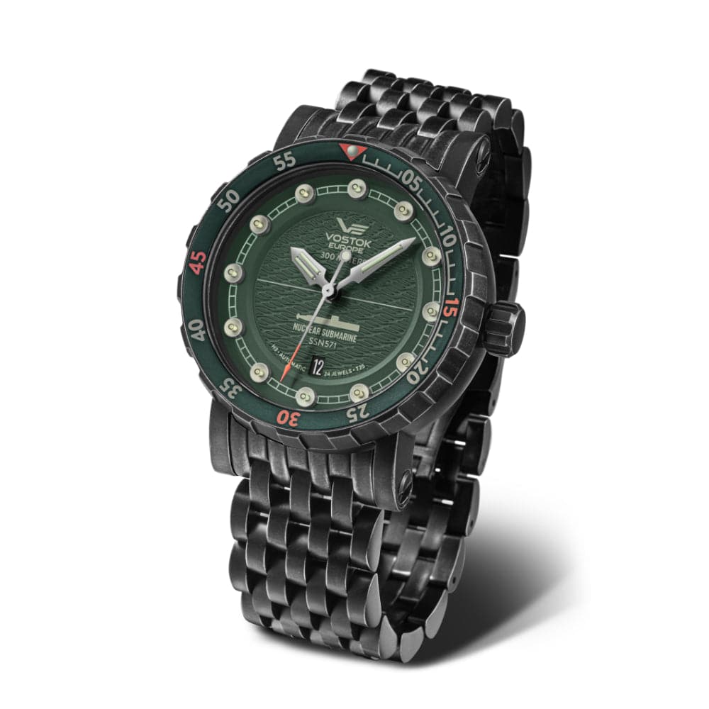 – The watch set comes with dry box, screwdriver, 2 straps (leather and silicon) and booklet with history of the submarine and description of whole SSN571 Nuclear Submarine watch line.