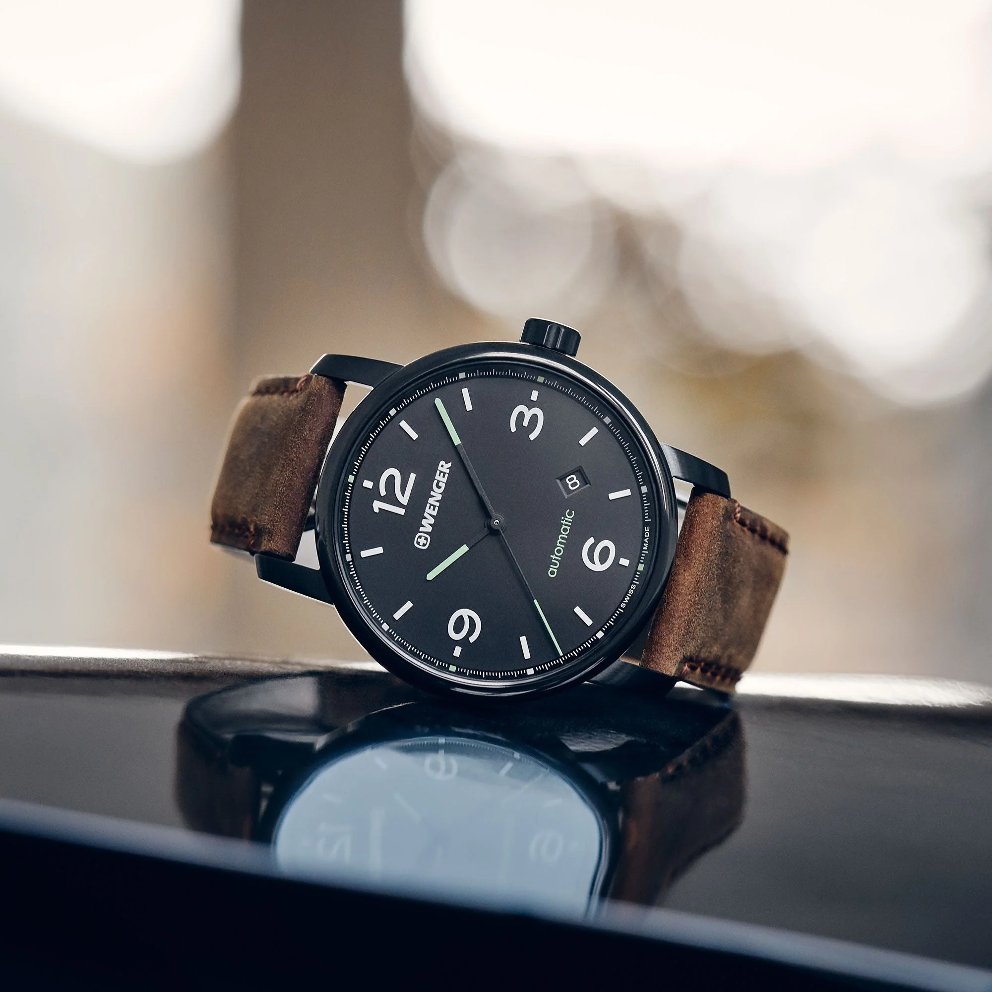 Immerse yourself in the world of timeless sophistication with the Wenger Urban Metropolitan Automatic Black Dial Leather Watch, a masterpiece of design and engineering that bridges the gap between vintage allure and modern precision. At first glance, the watch captures attention with its elegant simplicity, a nod to the classic era of watchmaking, yet beneath this refined exterior lies a heart that beats with the precision of cutting-edge Swiss technology.