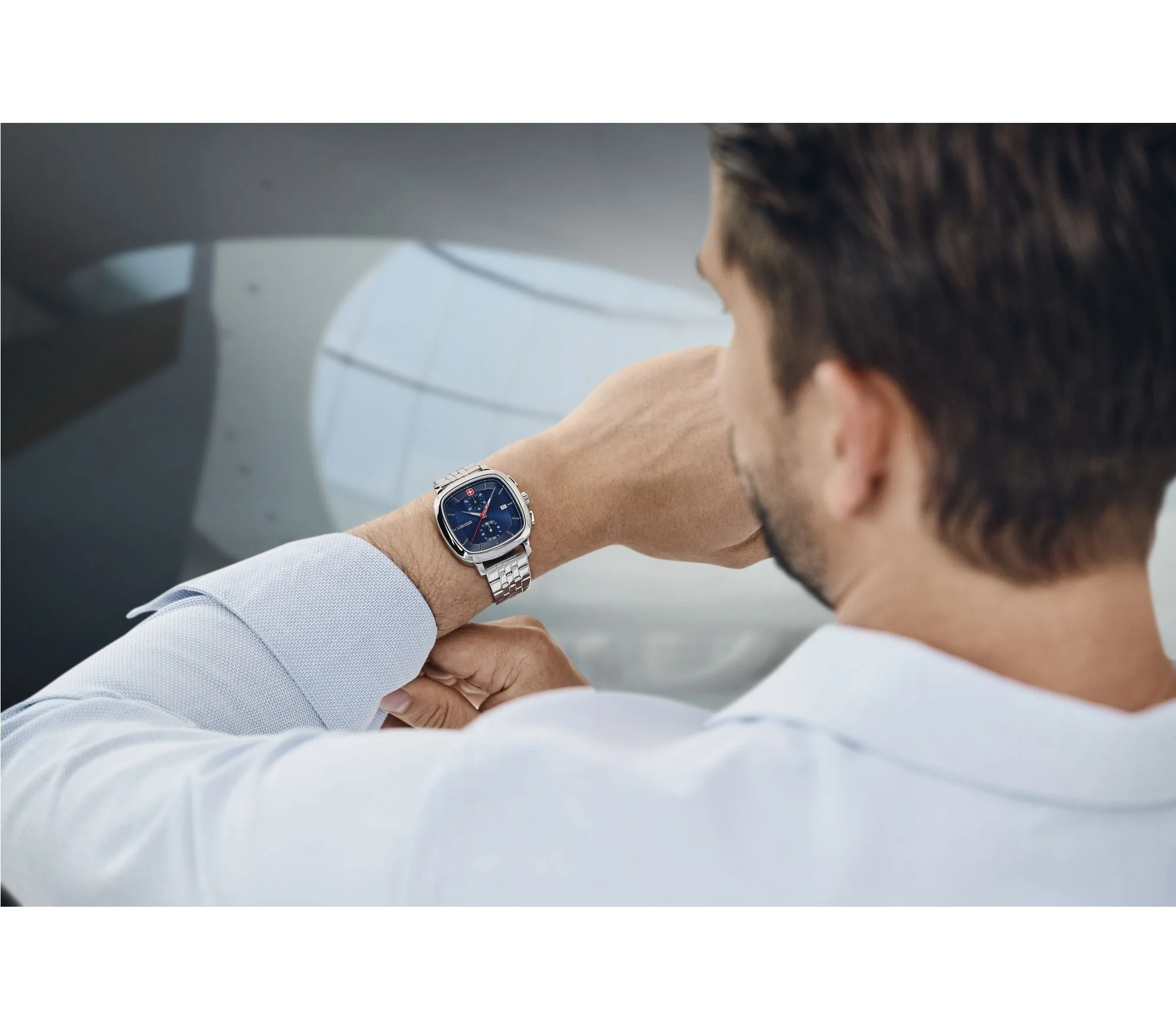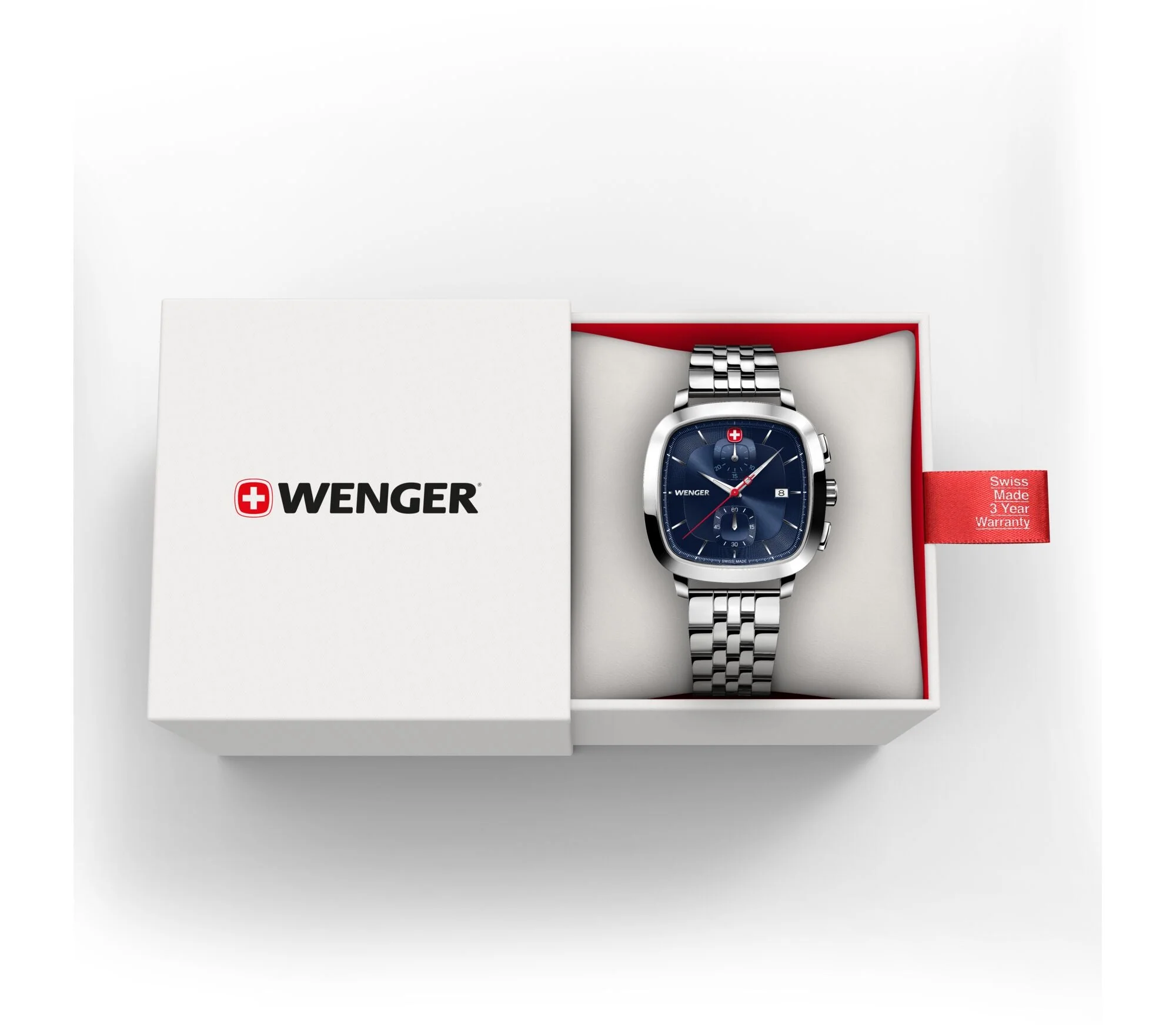 The Wenger Vintage Classic Chrono 39.5mm men’s watch blends refined style with modern functionality in a polished stainless steel silhouette. Its sunray brushed blue dial, framed by a silver bezel, offers a striking yet timeless appeal, while luminescent hands and a date display enhance day-to-night readability. Designed for durability, it features a sapphire crystal glass, water resistance up to 50 meters, and a solid stainless steel bracelet with a sliding buckle closure. The chronograph function ensures precise timekeeping, supported by reliable quartz movement and a pressed-in caseback. Crafted for those who appreciate classic design and lasting quality, this watch is a sophisticated companion for every occasion.