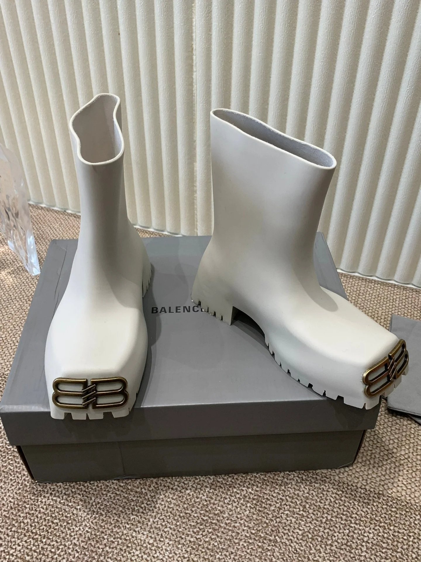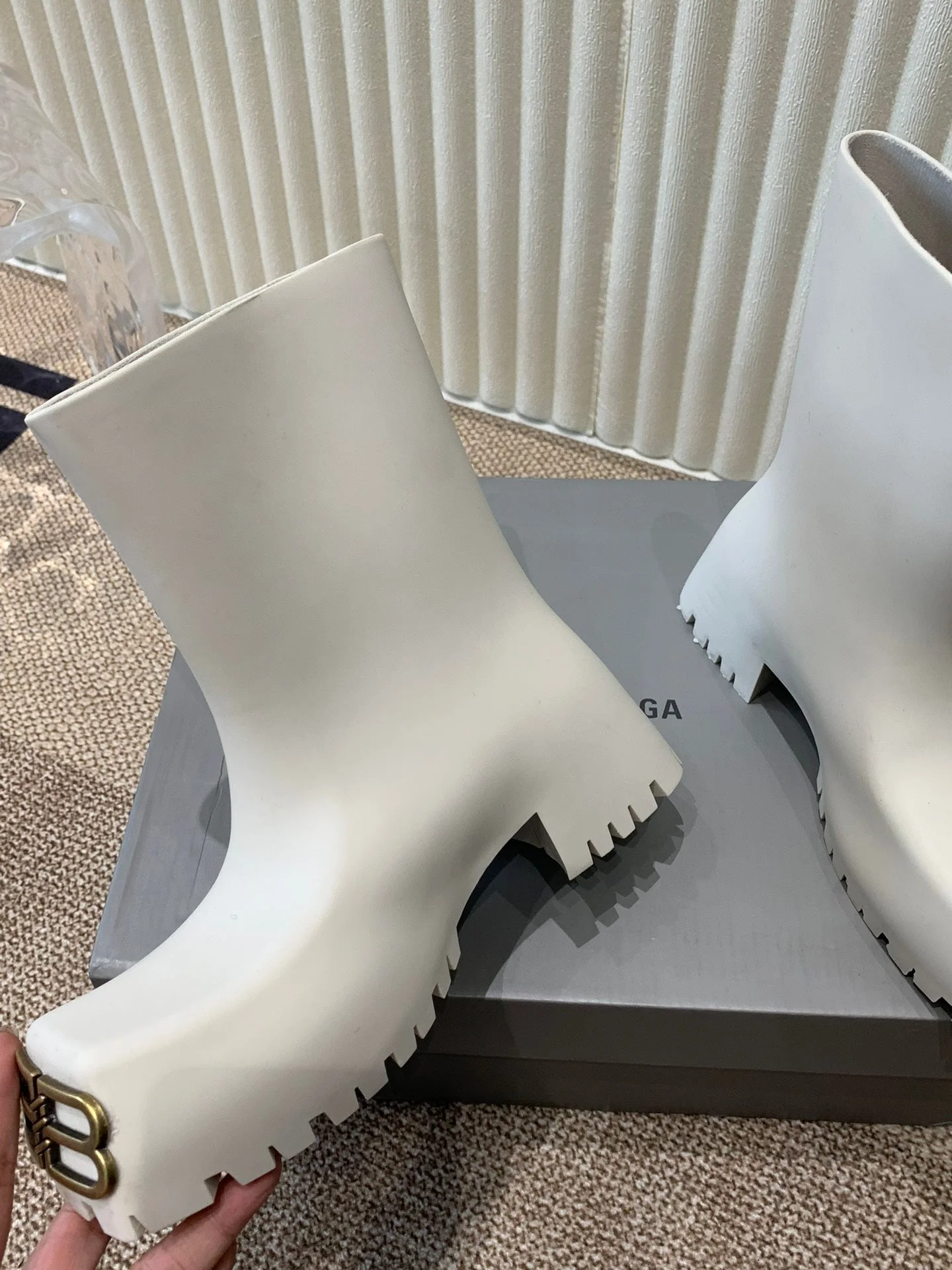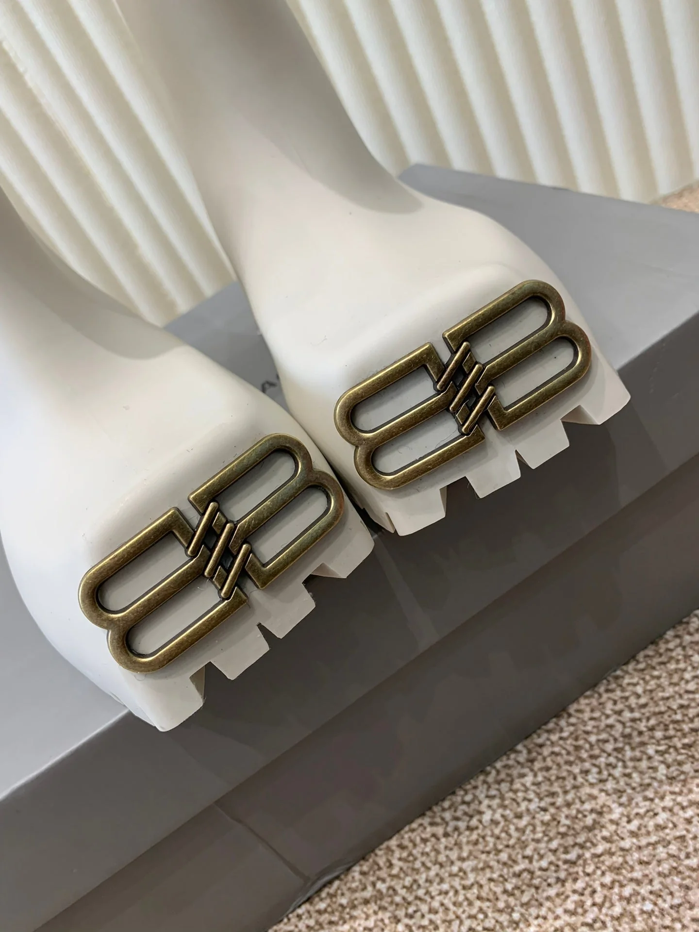 WHITE SCULPTED RUBBER BOOTS WITH GOLD MONOGRAM