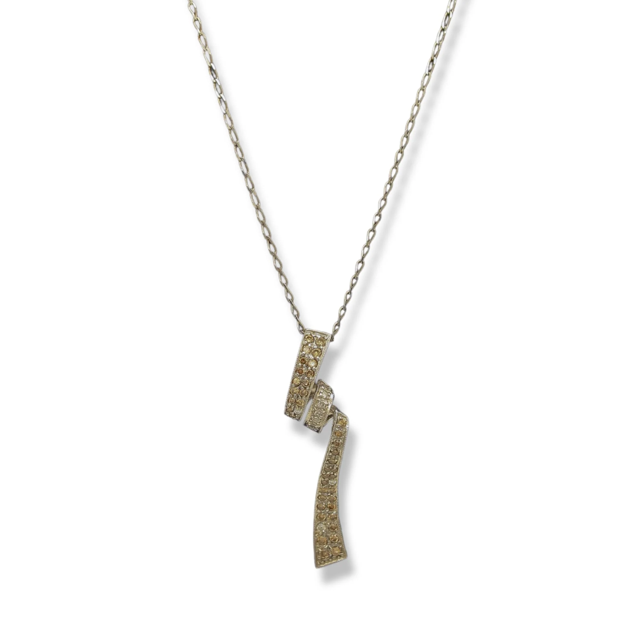 This chic necklace for women is a timeless addition to any jewelry collection. Crafted from 18K white gold, the chain is 15.5 inches long and has a weight of 1.6 g. The pendant/charm is 14K white gold and weighs 2.72 g. It features a 1.5 inch white and tan cubic zirconia stone, making it a subtly glamorous statement piece.