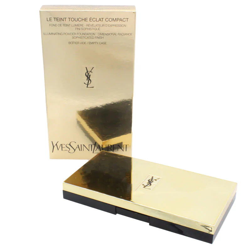 Experience the elegance and functionality of the YSL Le Teint Touche Éclat Compact Foundation Case, designed to hold your favourite YSL Illuminating Power Foundation refill perfectly. Encased in a sophisticated design, this compact is a must-have accessory for any woman passionate about beauty. Its luxurious velvet pouch ensures that your foundation is always protected and ready to go whenever you are.