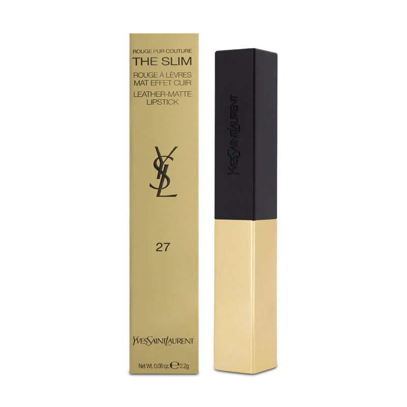 Experience a touch of luxury with the YSL The Slim Matte Lipstick in 27 Conflicting Crimson Red. This lipstick combines high fashion with impeccable design, offering intensely pigmented lips that feel feather-light. The signature square bullet allows for precision application, ensuring every application is flawless.