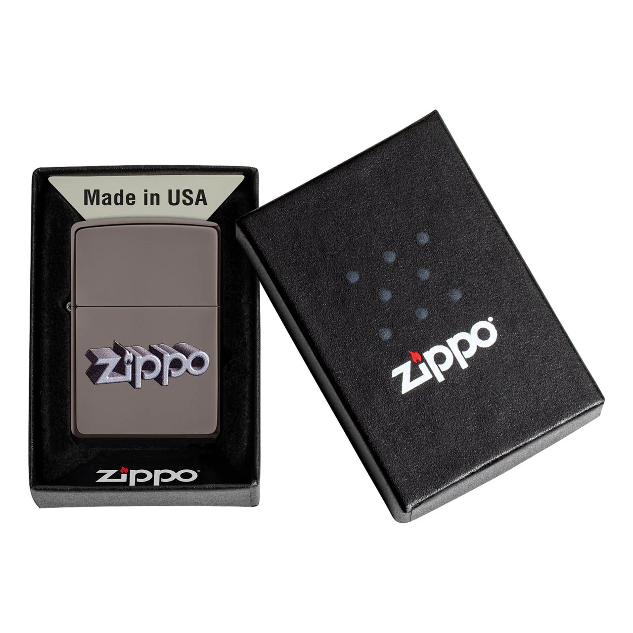 Showcase your Zippo pride with this new classic design! This design features the iconic Zippo logo in 3D, which pops off this Black Ice lighter. Finished using the color imaging process, this lighter is sure to stand out. Comes packaged in a gift box. For optimal performance fill with Zippo lighter fuel.