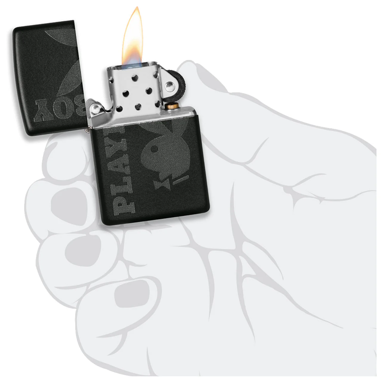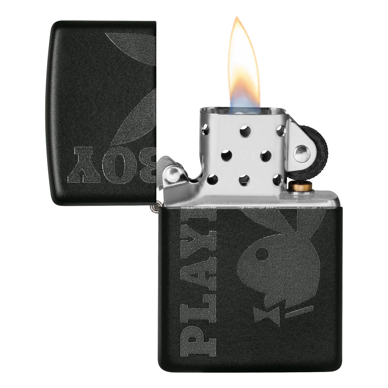 This Classic Matte Black lighter features a black Playboy Bunny and logo. The black on black tones of this design produces a high end aesthetic. Comes packaged in a gift box. For optimal performance fill with Zippo lighter fuel.